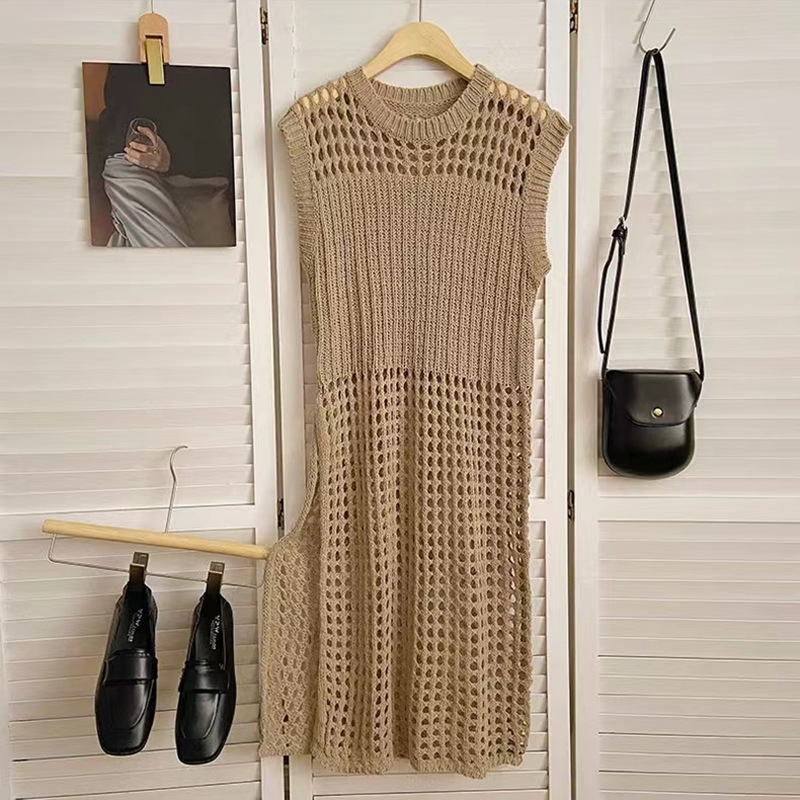 Главная страница > Южнокорейское дизайнерское весенне-осеннее ажурное трикотажное Сетчатое платье, Женский наборный окружающий жилет, юбка, жилет без рукавов