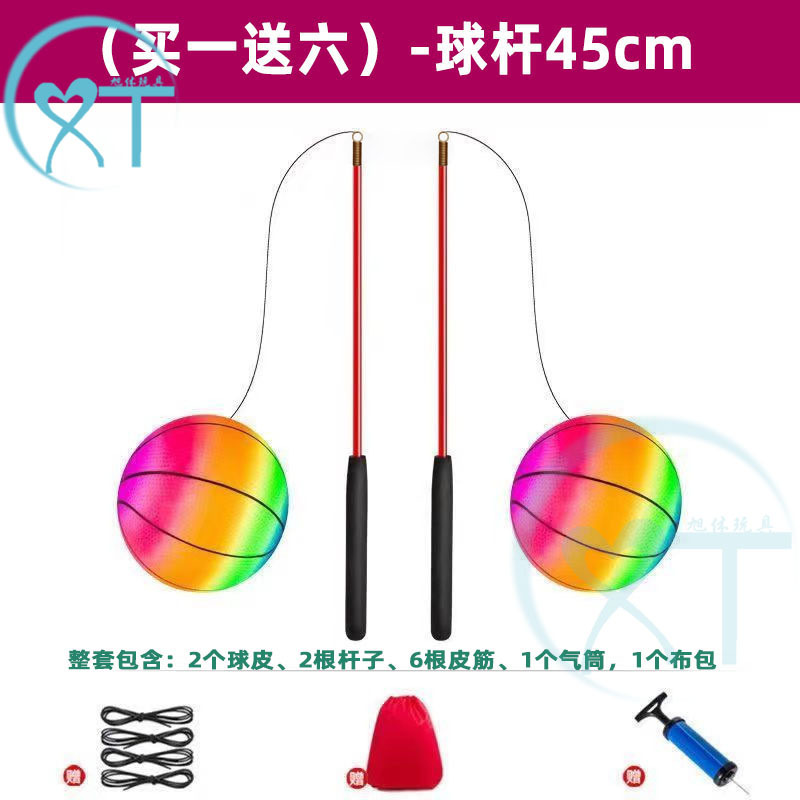 [Купите один, получите шесть бесплатно] 2 баскетбольных мяча + 6 эластичных веревок + 45 см медный шест + воздушный насос + 1 тканевый мешок