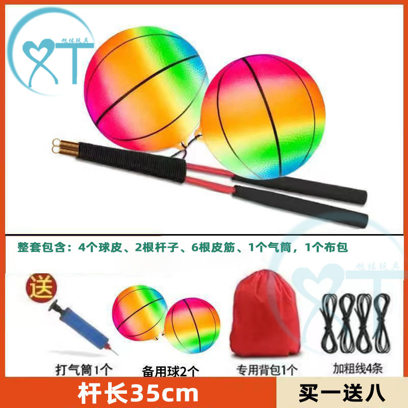 [Купите один, получите шесть бесплатно] 2 баскетбольных мяча + 6 эластичных веревок + 35 см медный шест + воздушный насос + 1 тканевый мешок