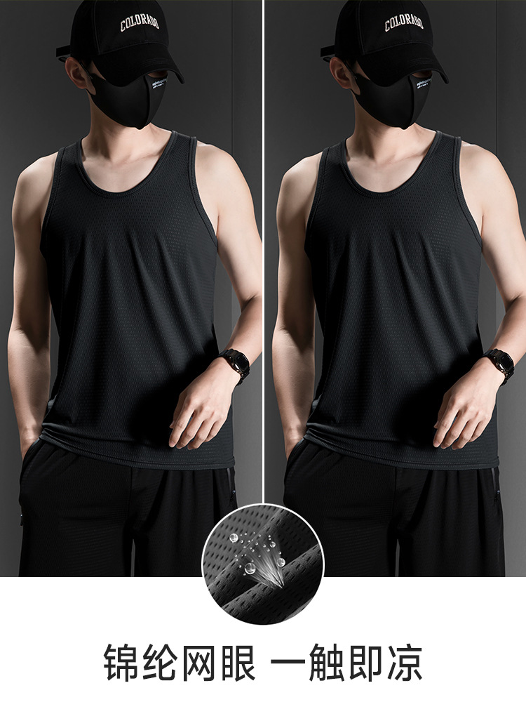 Черный + серый туман [мужской сетчатый жилет с узкими плечами]