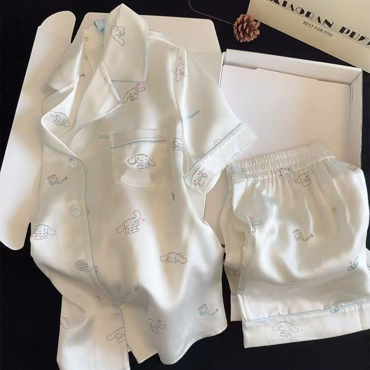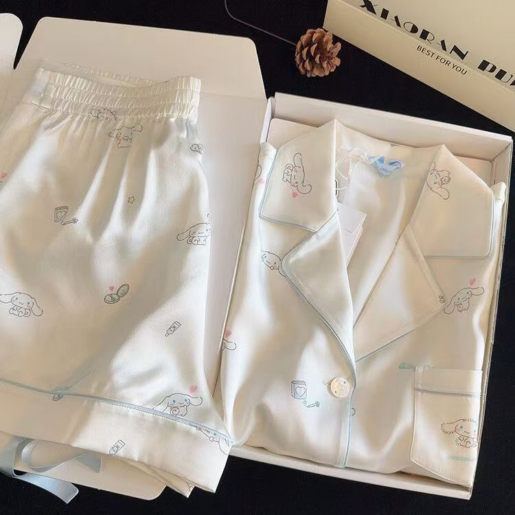 Главная страница > Женские пижамы с короткими рукавами и шортами в стиле мультфильма «Собака с корицей» в стиле ледяного шелка можно носить вне дома, домашняя одежда, студенческое общежитие, комплект из двух предметов