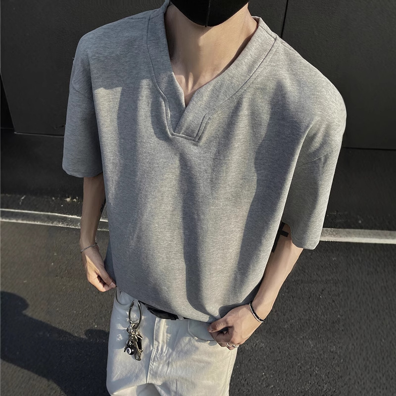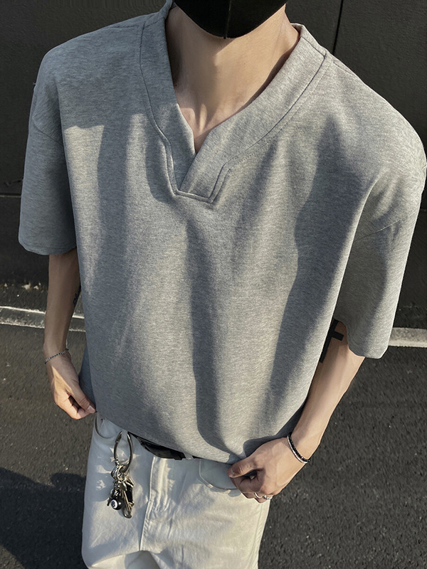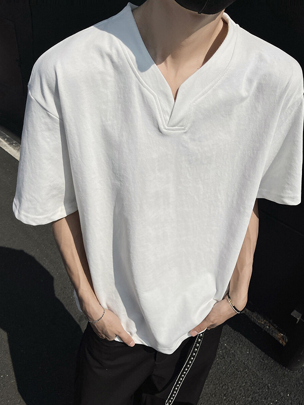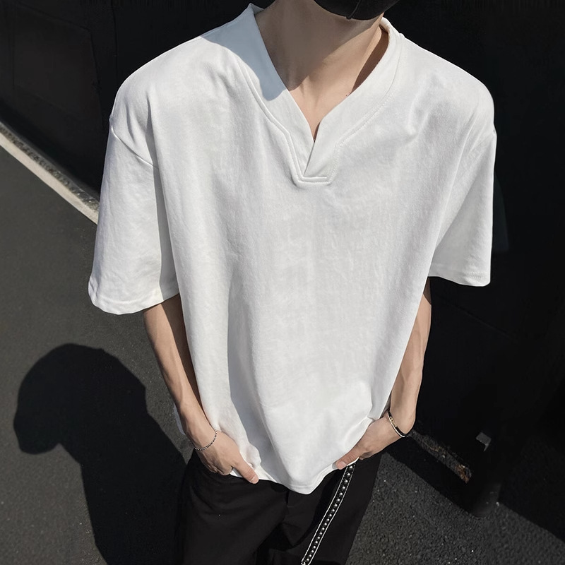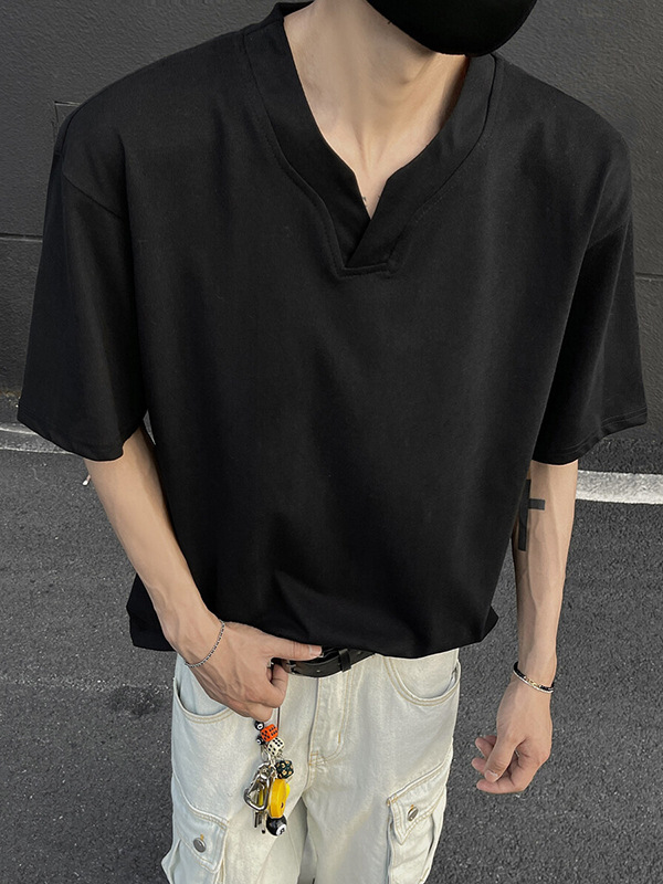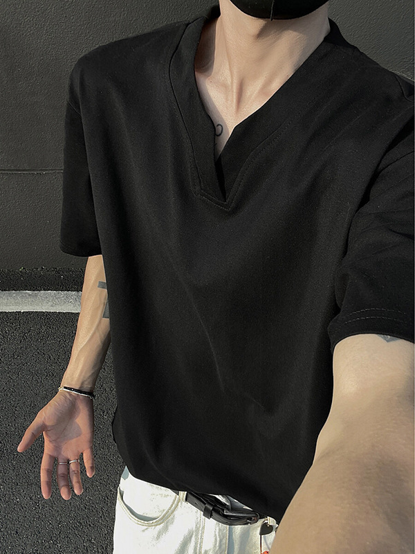 Главная страница > Черная мужская футболка Solona в тяжелом весе, летняя мужская футболка с v-образным вырезом и короткими рукавами, американская уличная футболка с правым плечом и половиной рукава