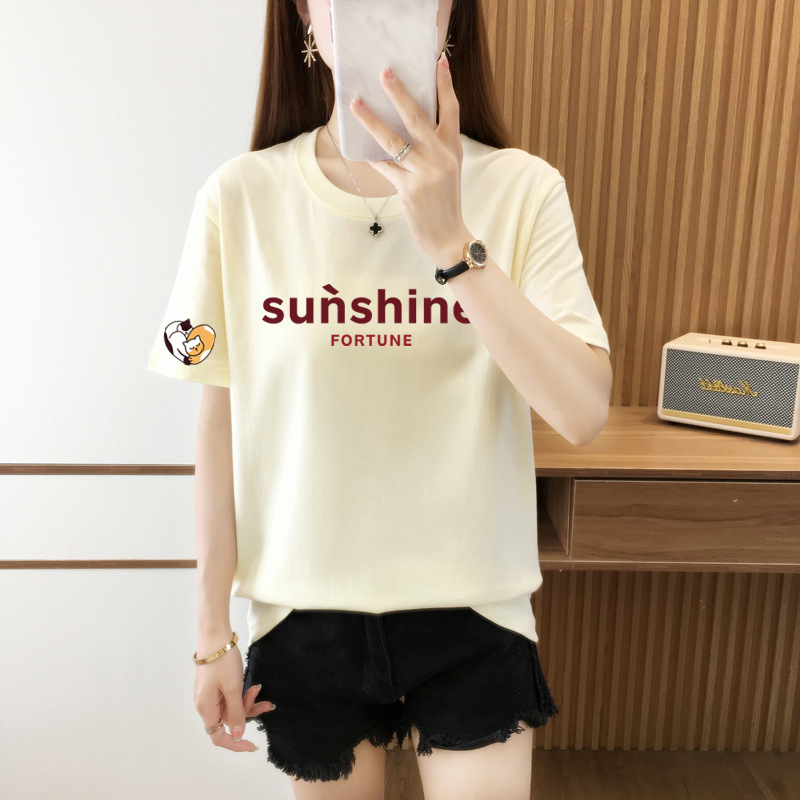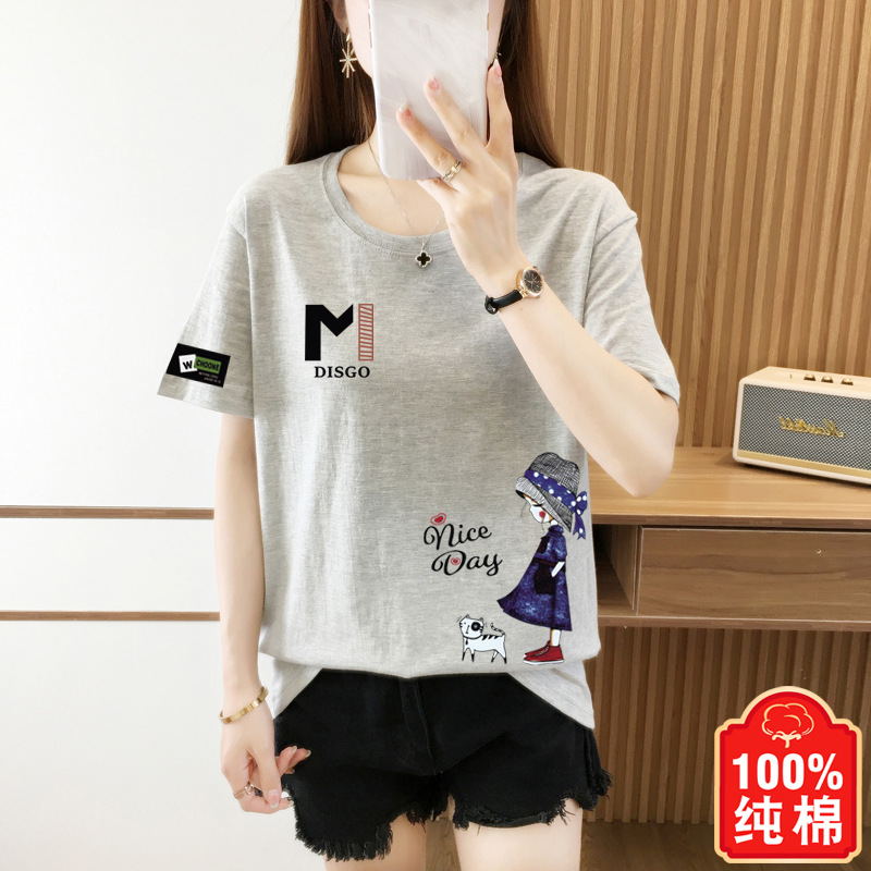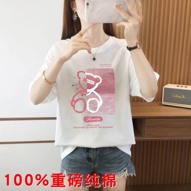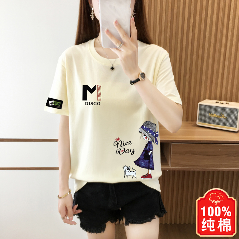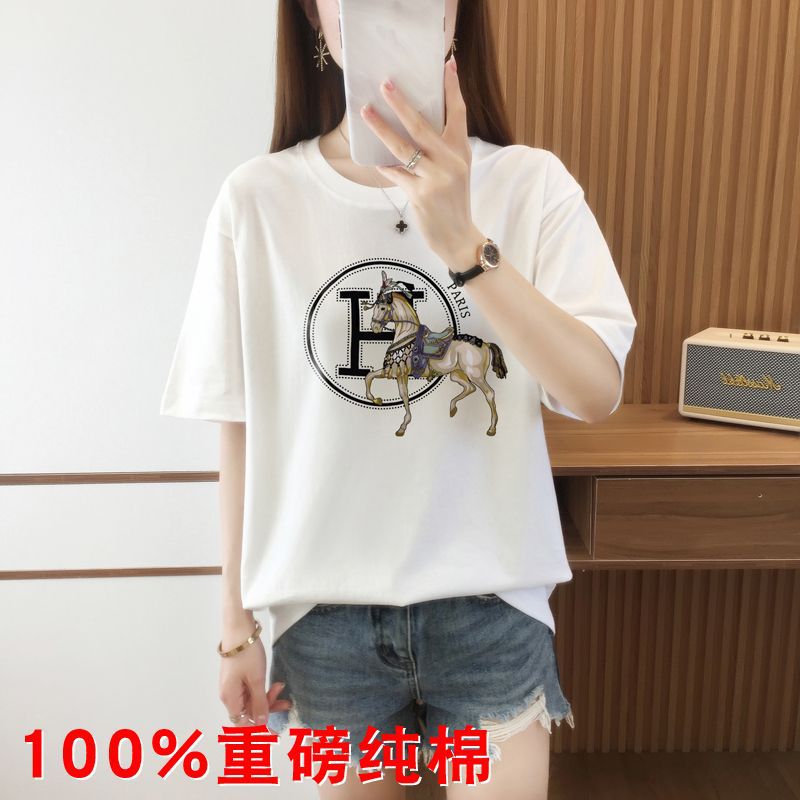 Главная страница > Футболка женская с коротким рукавом, свободная, из чистого хлопка, стильная парная футболка для пары, мужская и женская, оптовые дизайнерские топы, летний склад