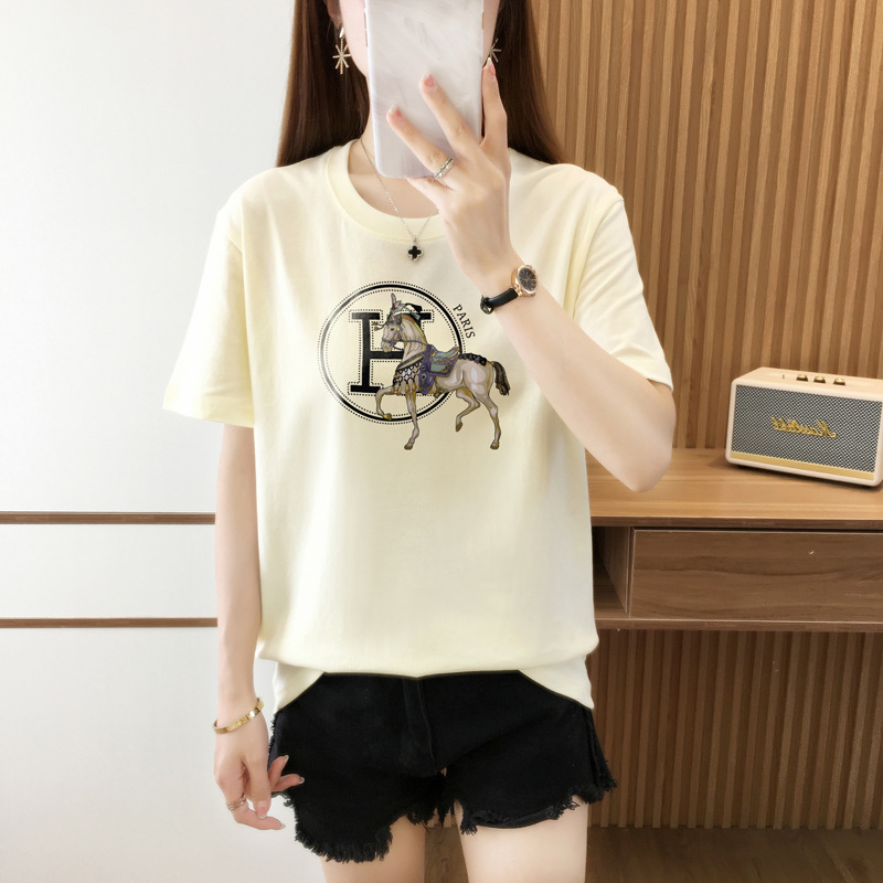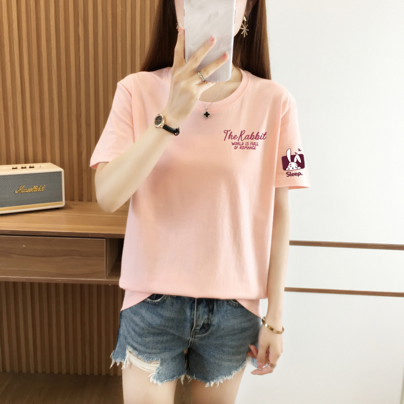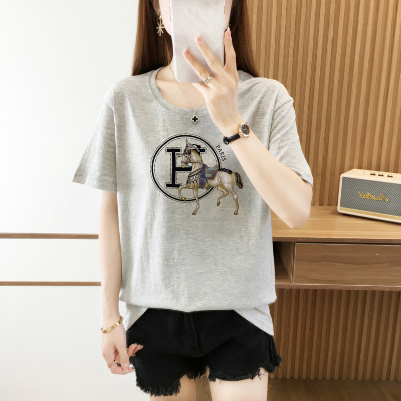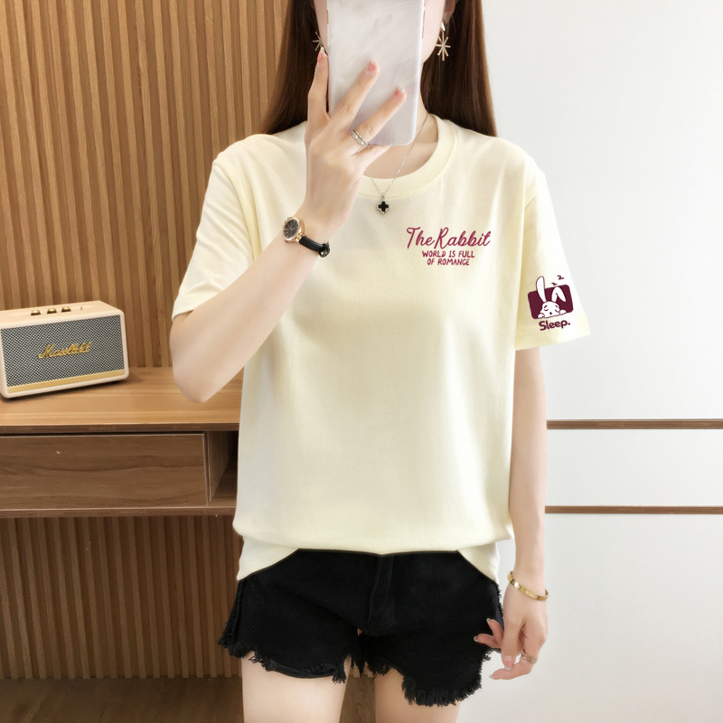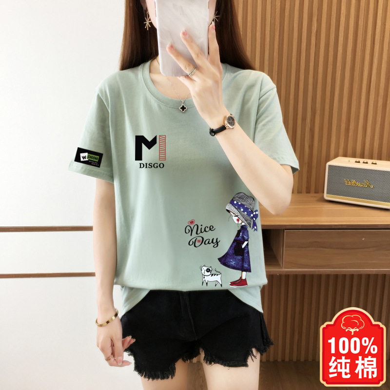 Главная страница > Футболка женская с коротким рукавом, свободная, из чистого хлопка, стильная парная футболка для пары, мужская и женская, оптовые дизайнерские топы, летний склад