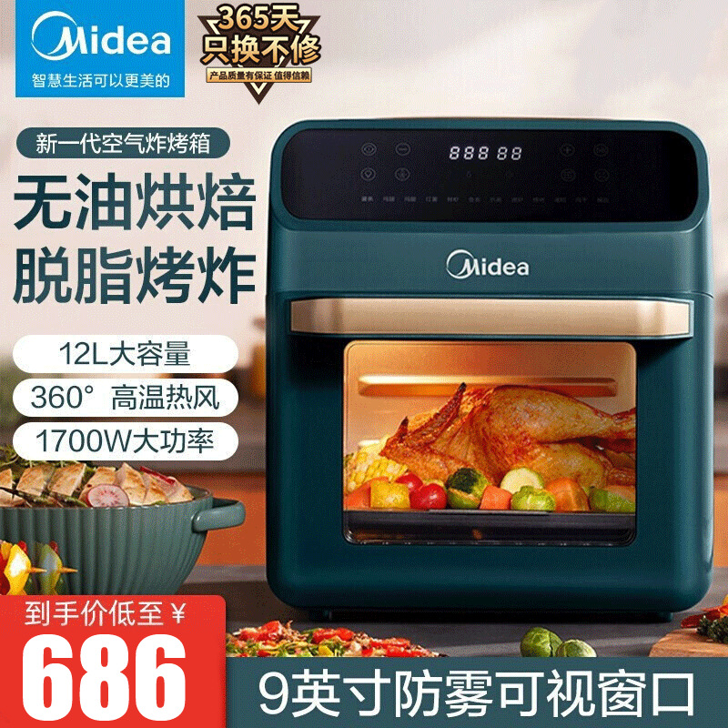 Midea (Midea) Воздушная фритюрница 12L большой емкости Бытовая умная безмасляная маложирная визуальная электрическая фритюрница WIFI