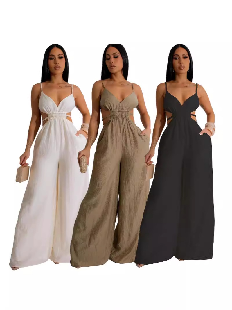 Главная страница > TZ9001 Европейский и Американский трансграничный Amazon сплошной цвет женские широкие комбинезоны с открытой спиной моды дикий темперамент