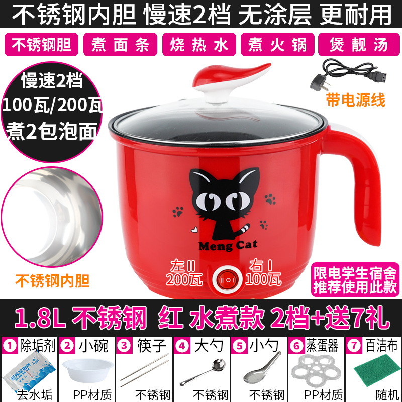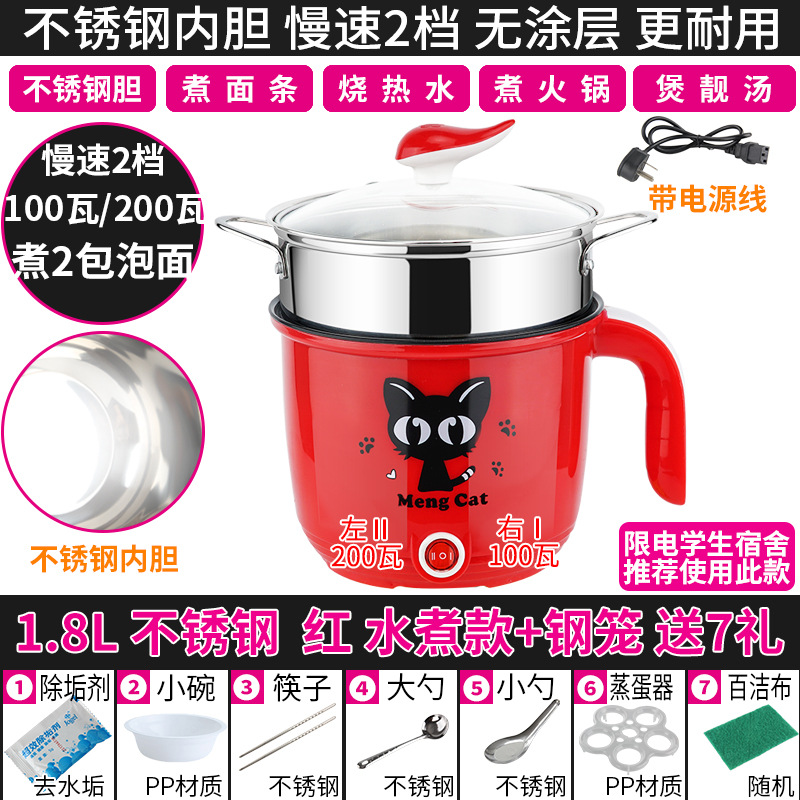 Кипяченая модель из нержавеющей стали 1,8 л, красная, 7 подарков + стальная клетка, 100 Вт/200 Вт