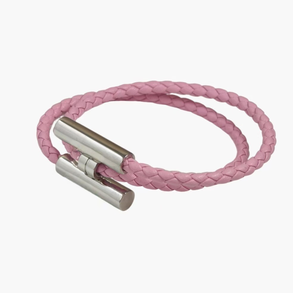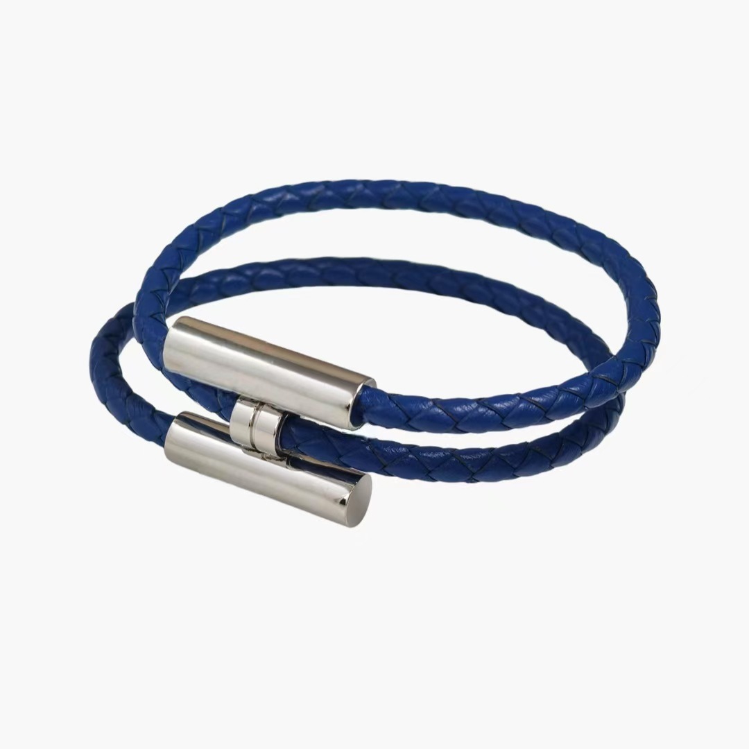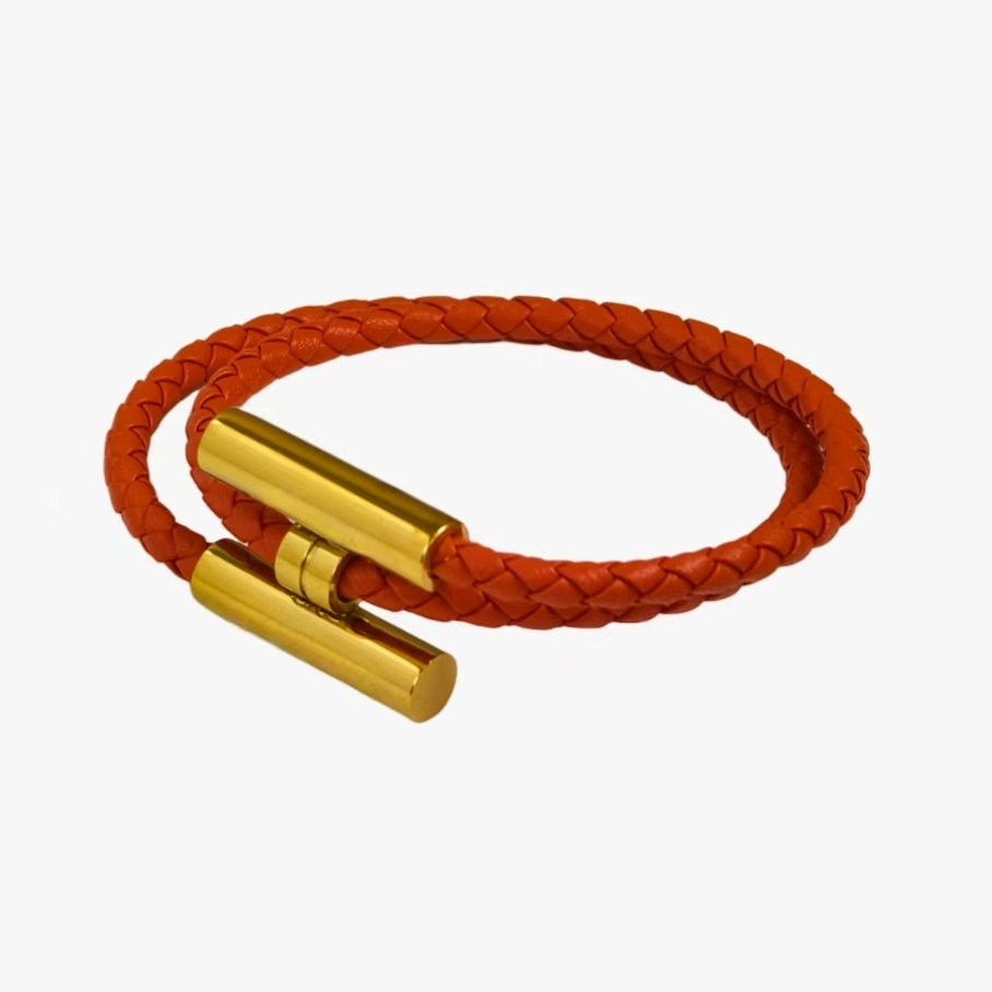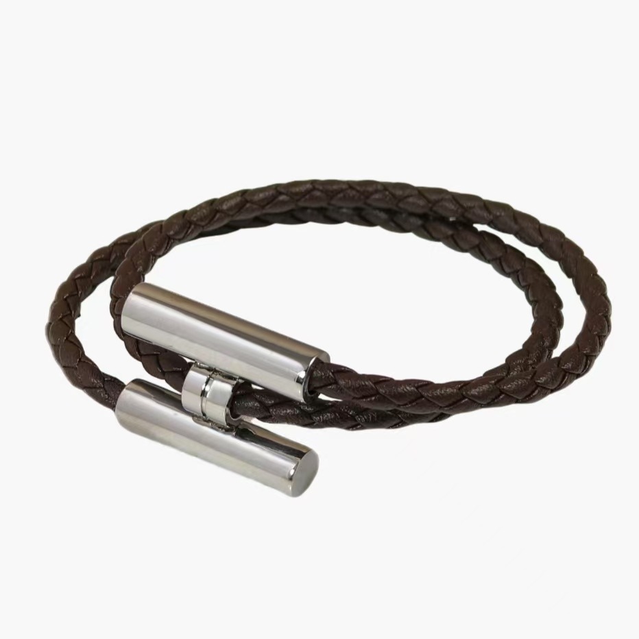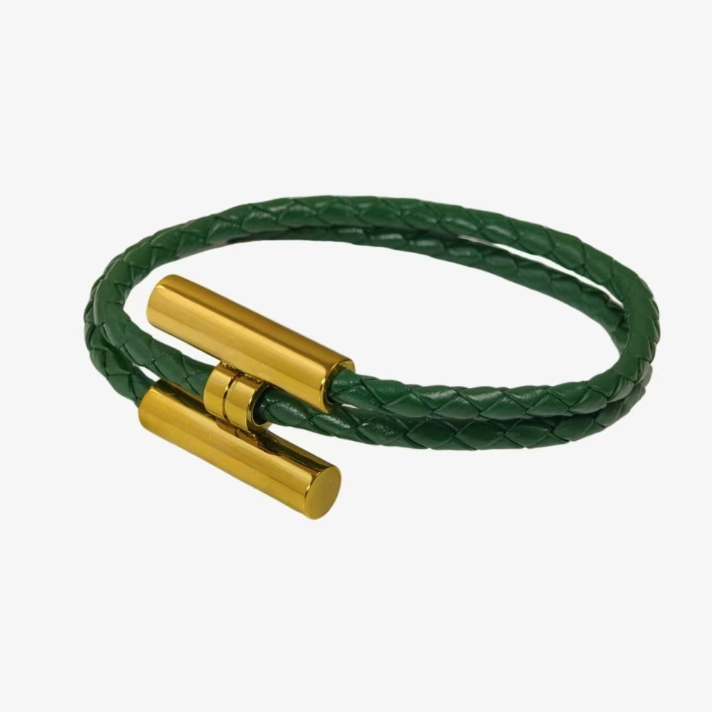 Главная страница > Трансграничный европейский и американский популярный браслет из нержавеющей стали H, кожаный плетеный браслет различных цветов, геометрический стиль и доступный роскошный стиль.