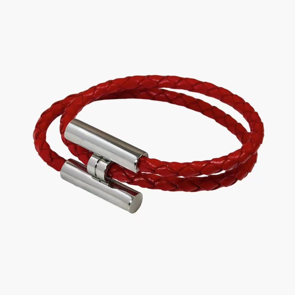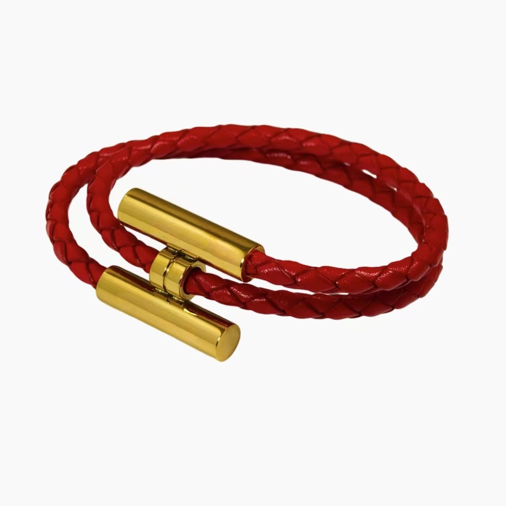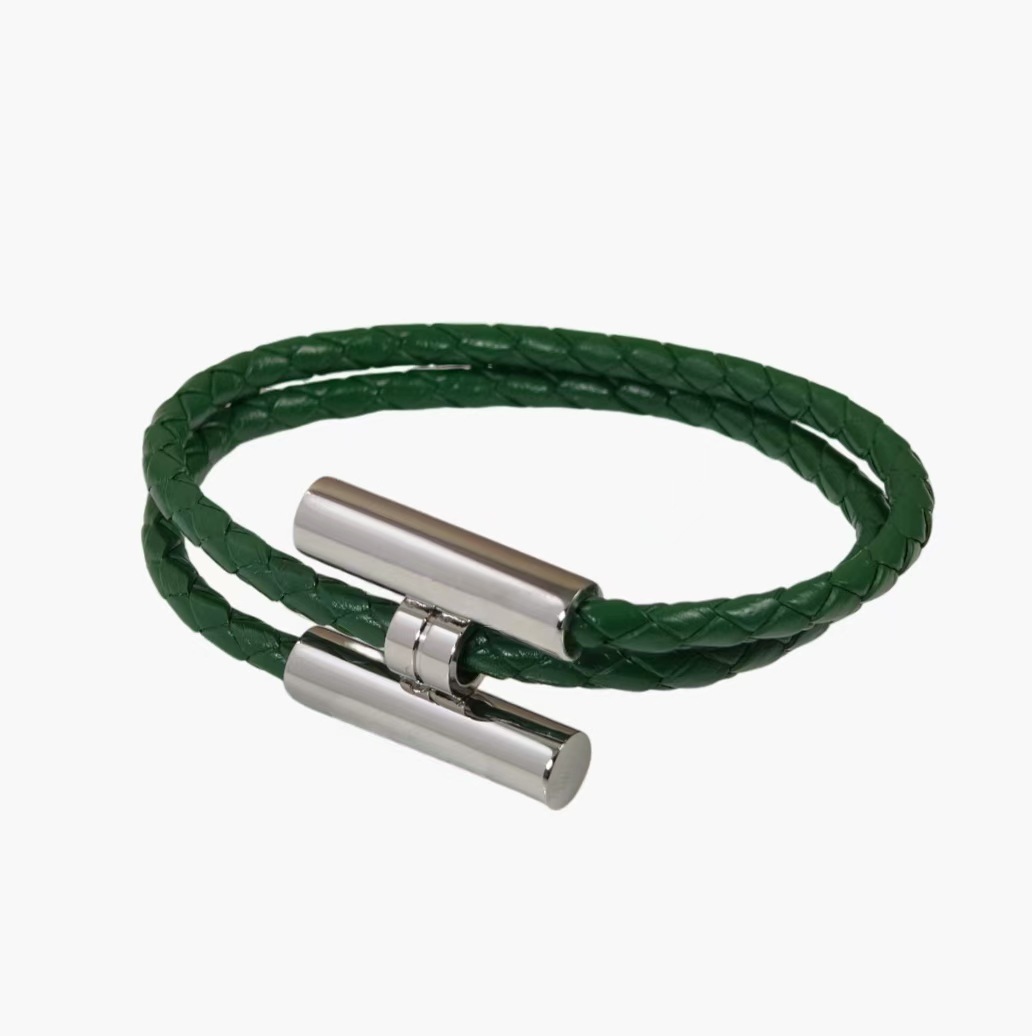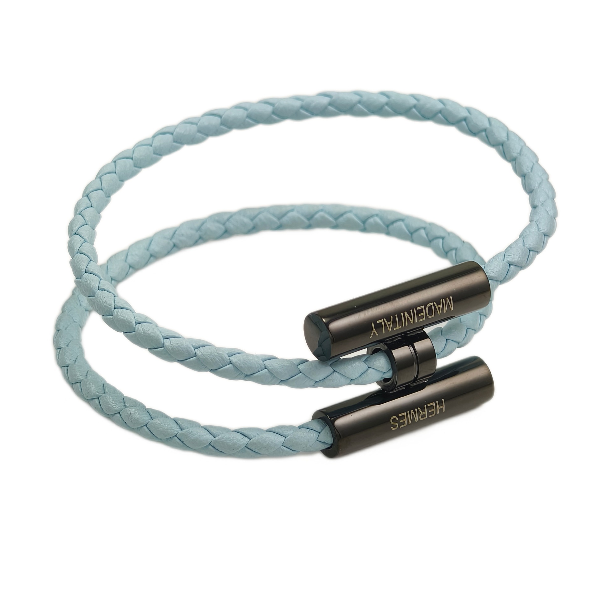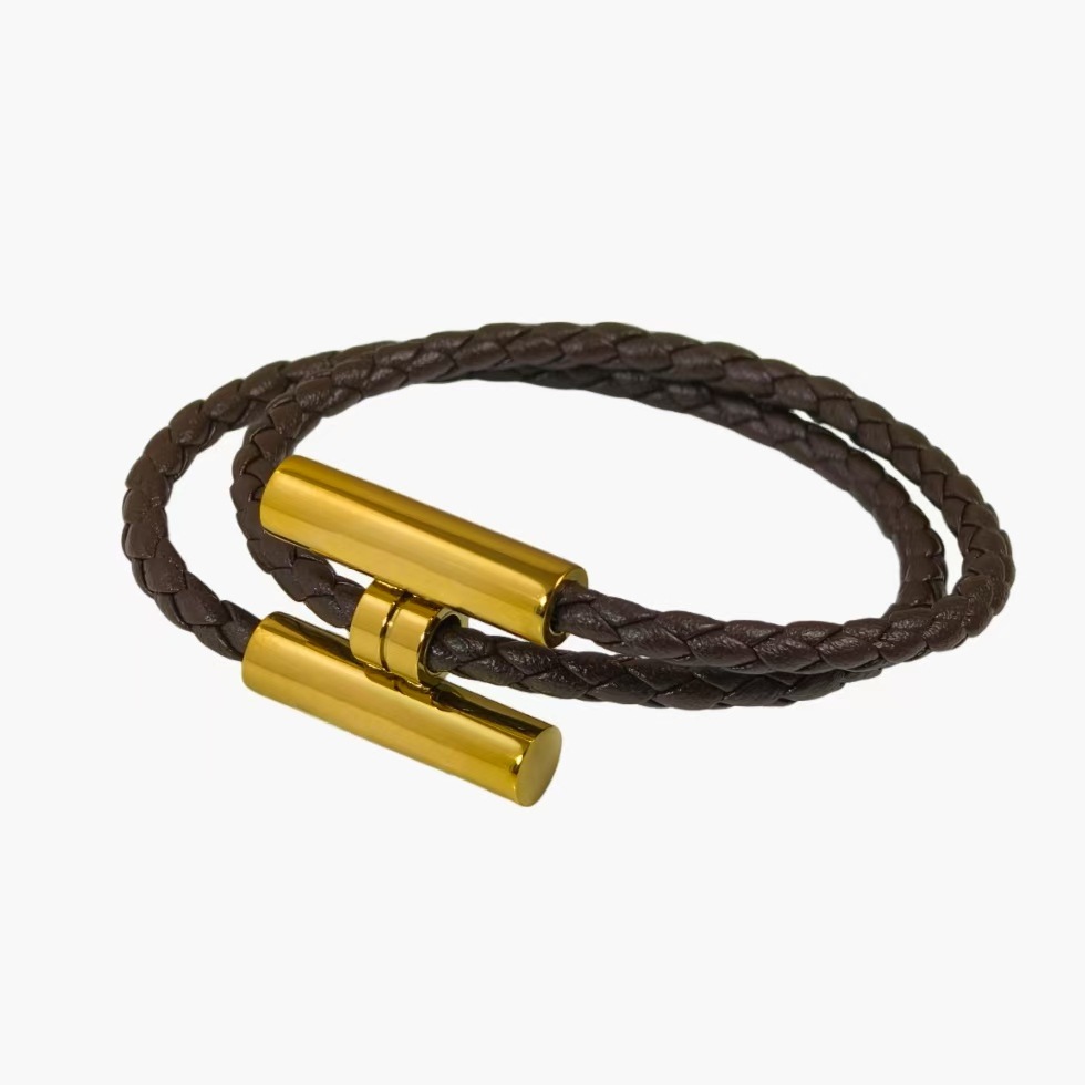 Главная страница > Трансграничный европейский и американский популярный браслет из нержавеющей стали H, кожаный плетеный браслет различных цветов, геометрический стиль и доступный роскошный стиль.
