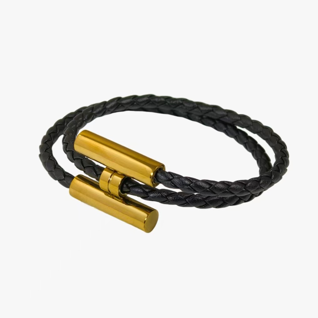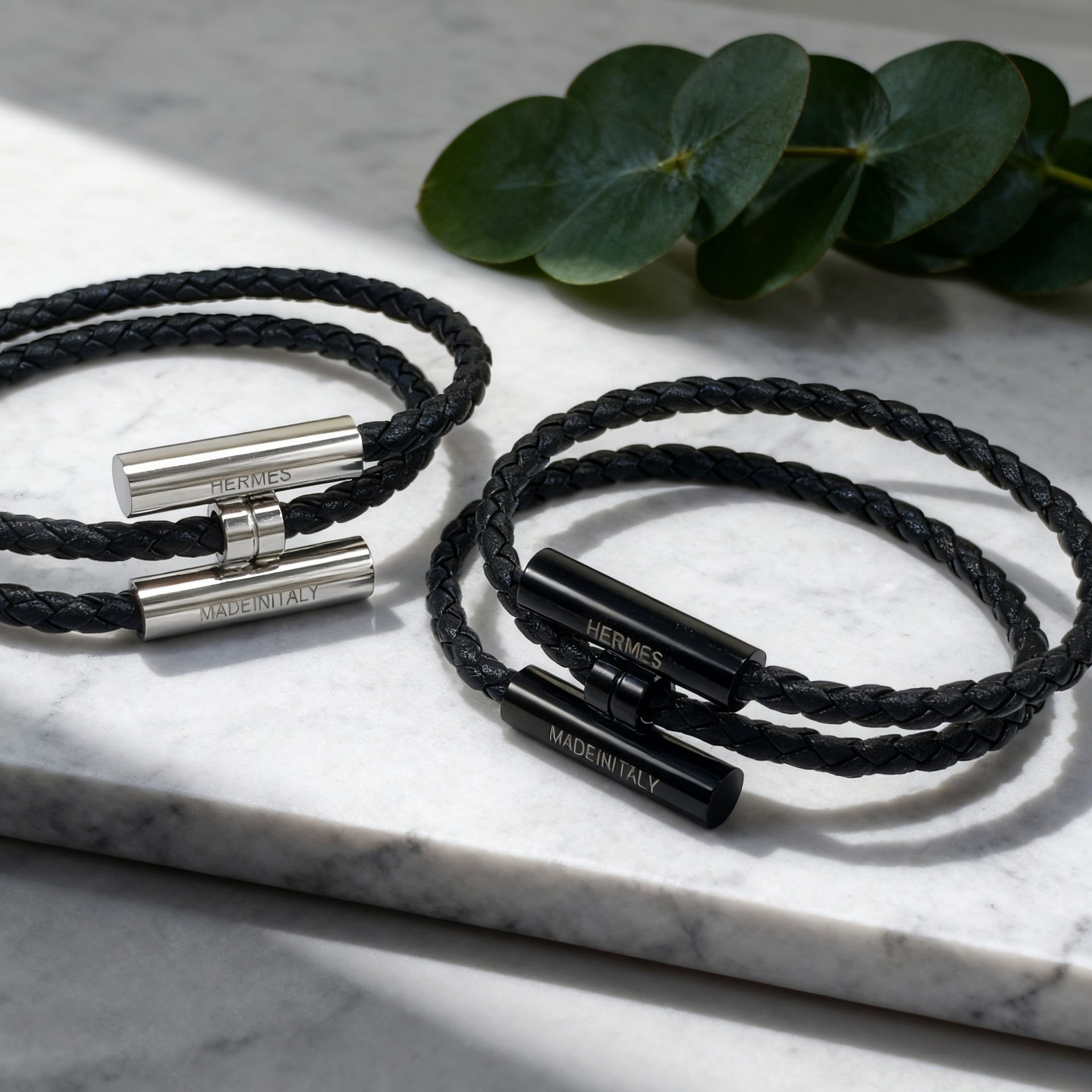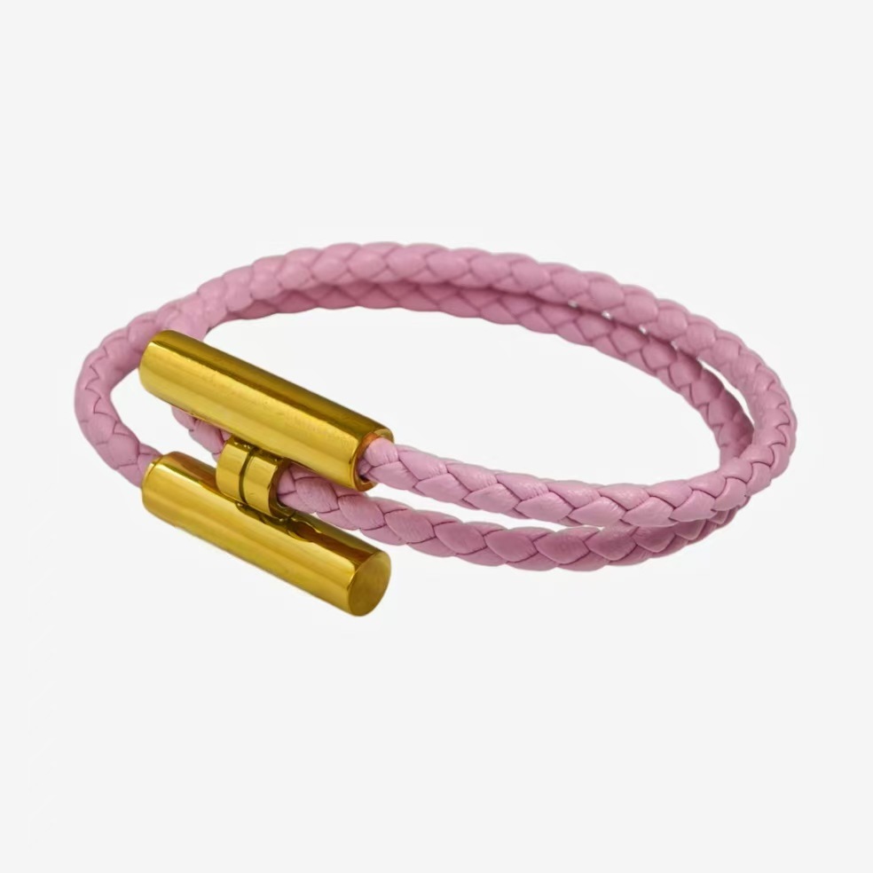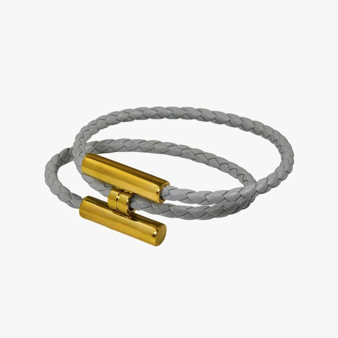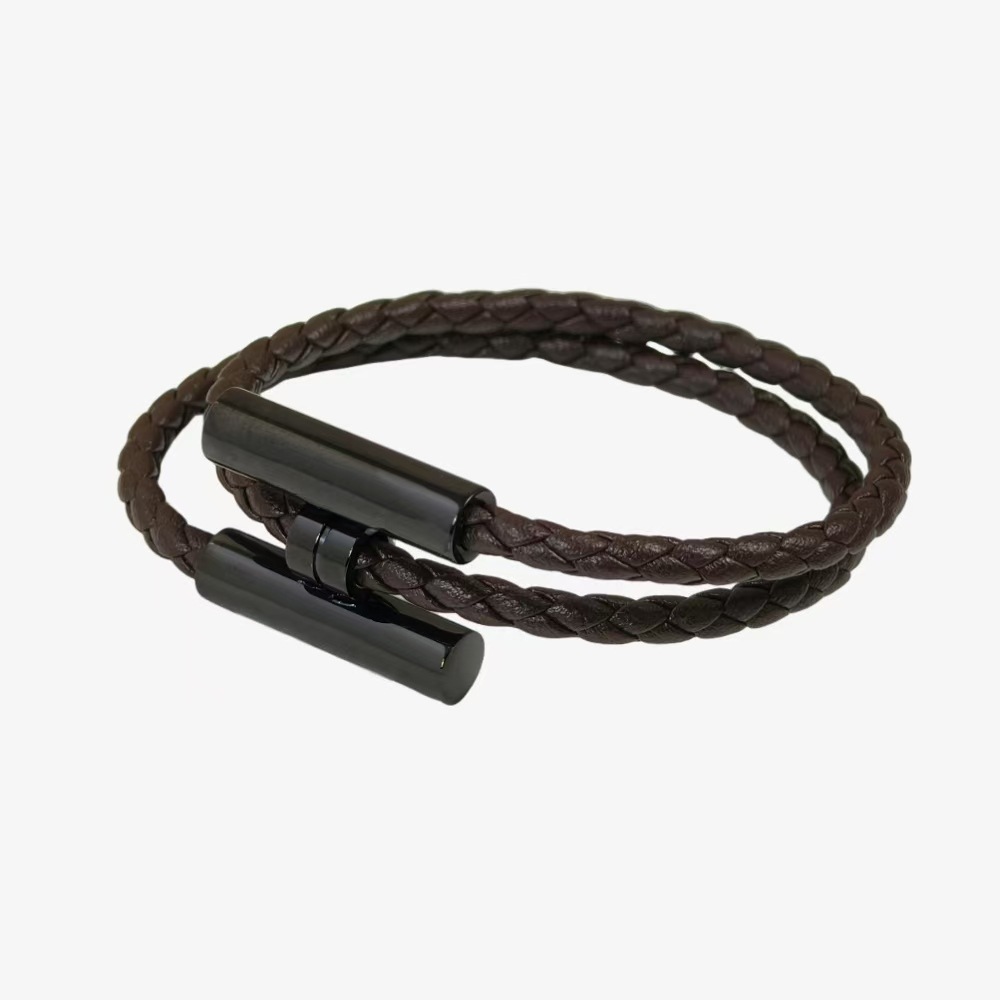 Главная страница > Трансграничный европейский и американский популярный браслет из нержавеющей стали H, кожаный плетеный браслет различных цветов, геометрический стиль и доступный роскошный стиль.