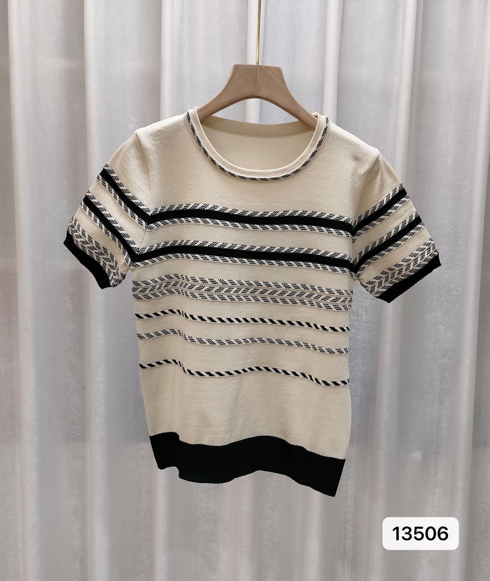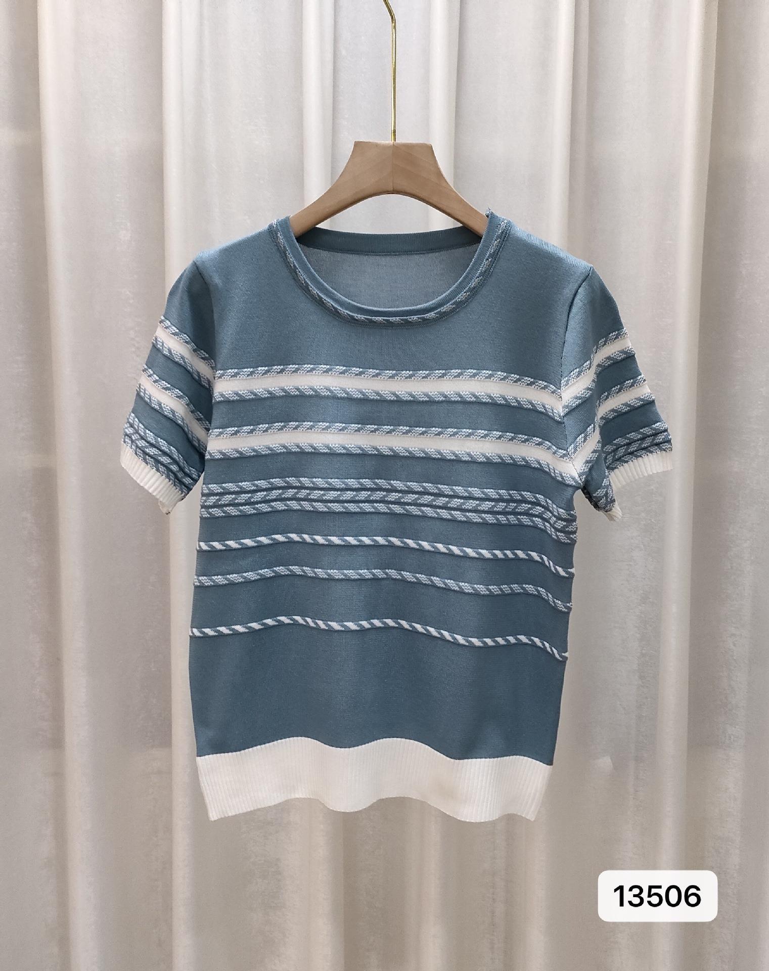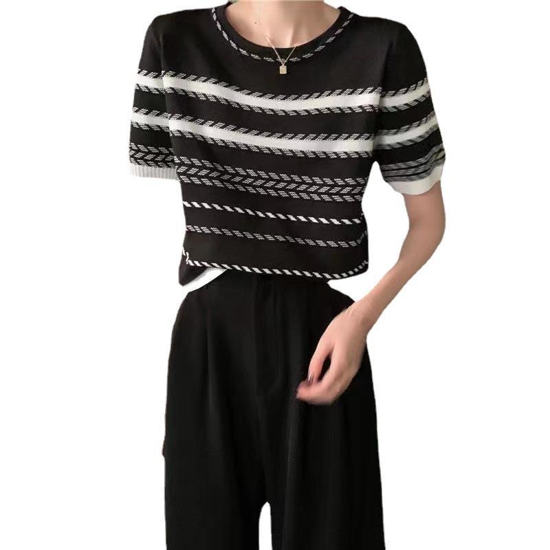 Главная страница > Вязаный свитер в полоску женский 2023 летний дизайн с круглым вырезом с короткими рукавами