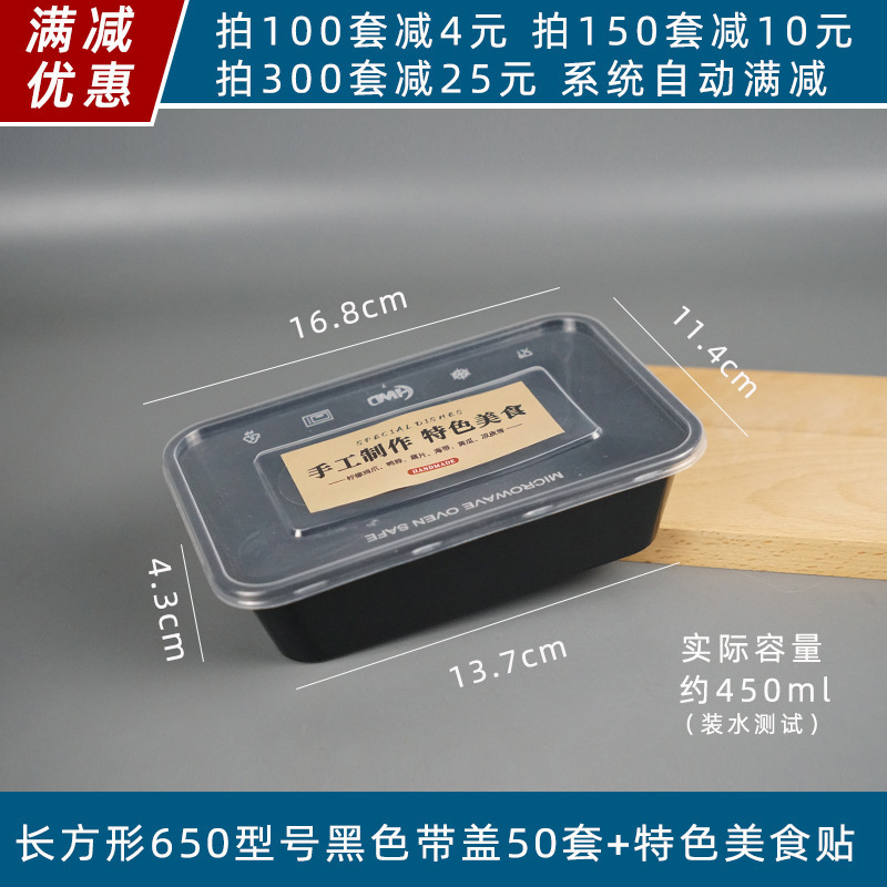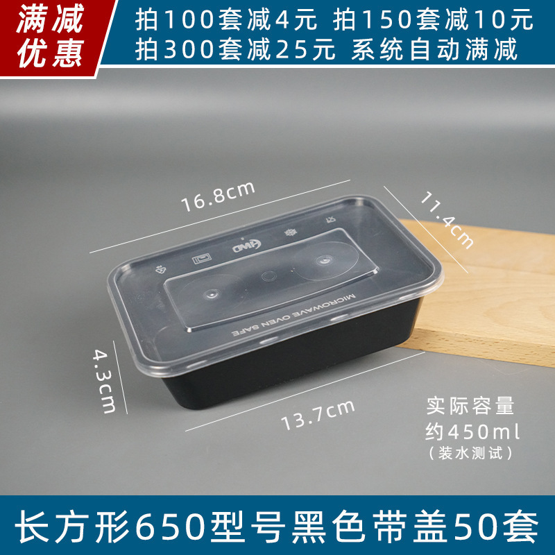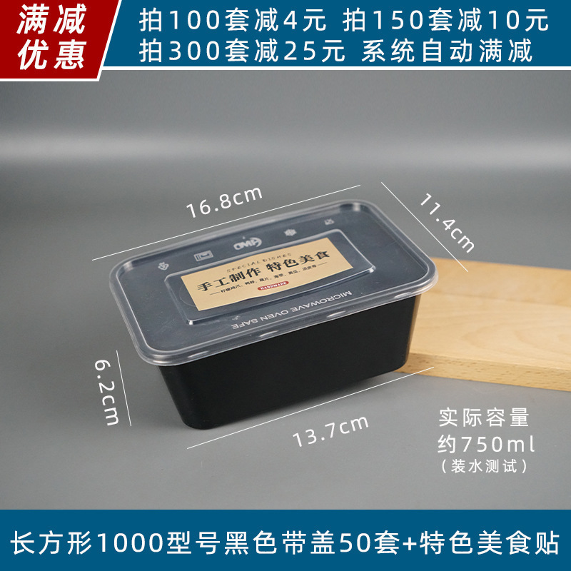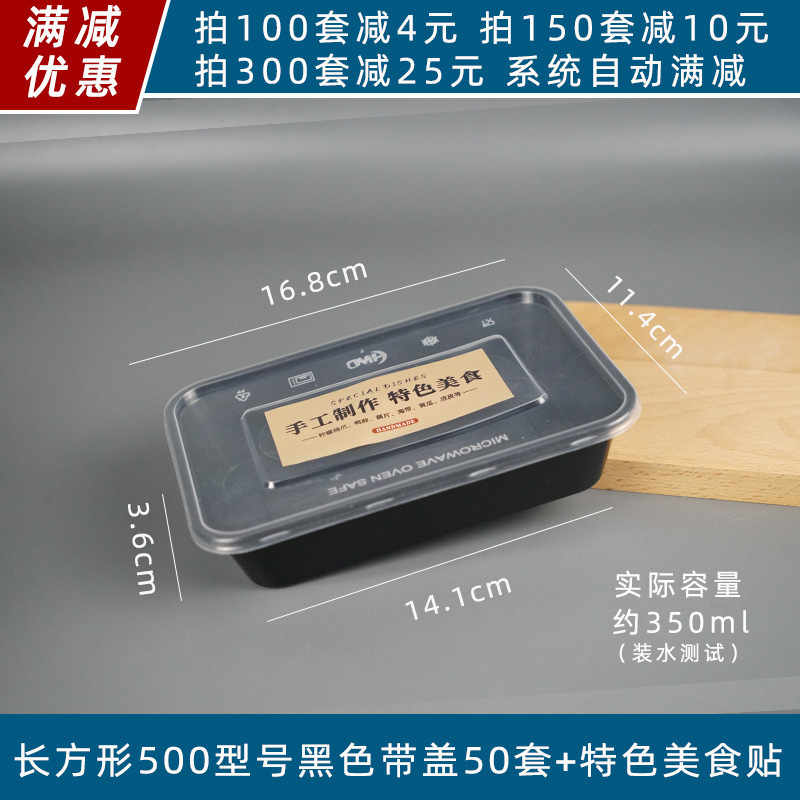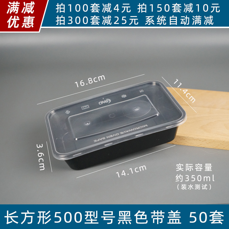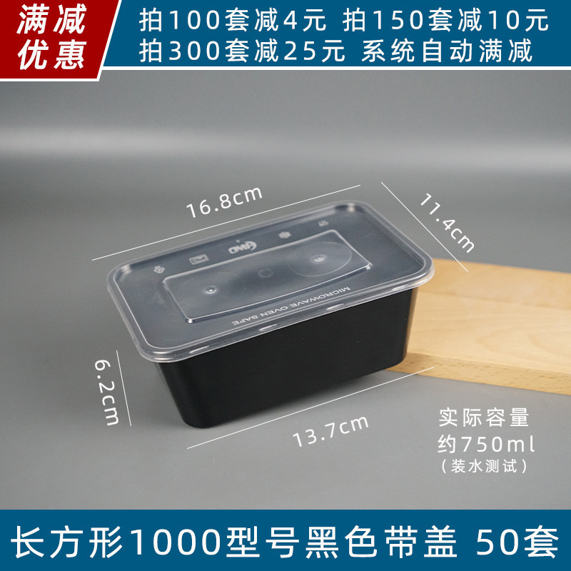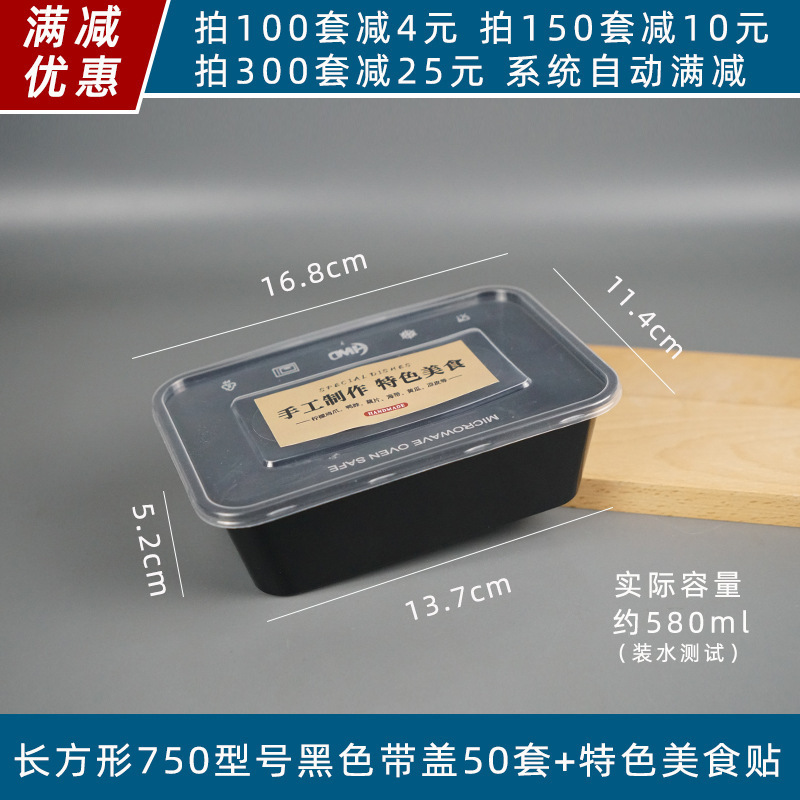 Прямоугольный 750 черный с крышкой 50 комплектов, около 580 мл≈ 0.5kg