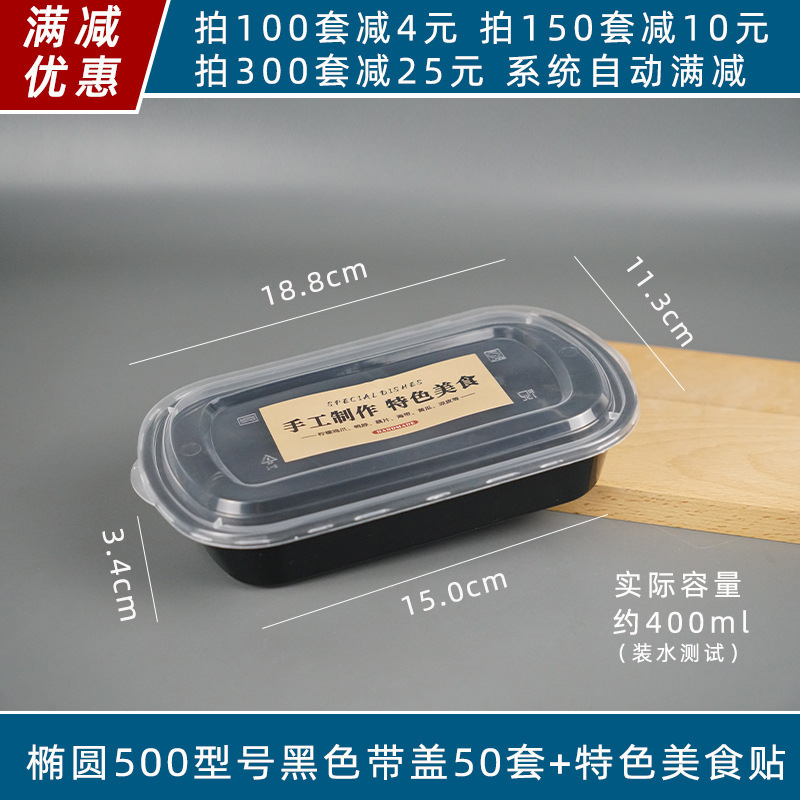 Овальный 0-образный 500 черный с крышкой 50 комплектов, около 400 мл, половина кота