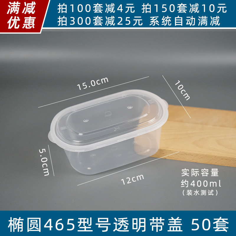 Овальный 0-образный 465 прозрачный с крышкой, 50 комплектов, около 400 мл, половина кота