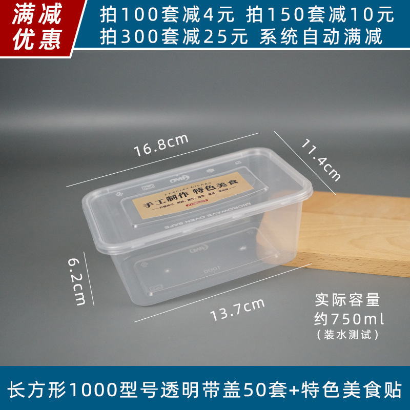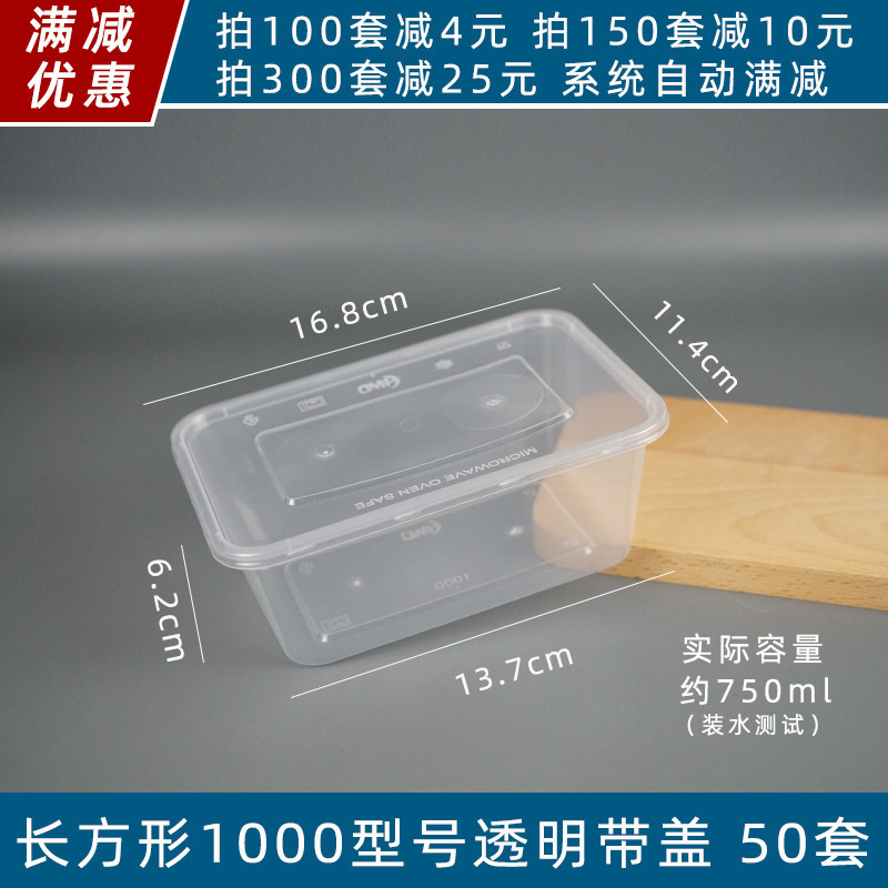 Прямоугольный 1000 прозрачный с крышкой 50 комплектов, около 750 мл≈ 0.5kg и более