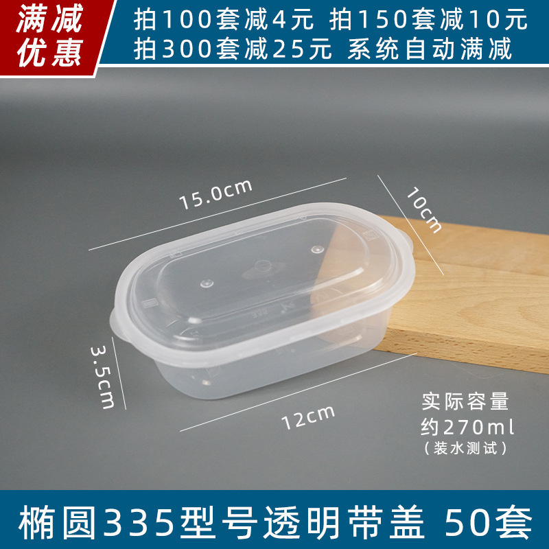 Овальный 0-образный 335 прозрачный с крышкой 50 комплектов, около 270 мл