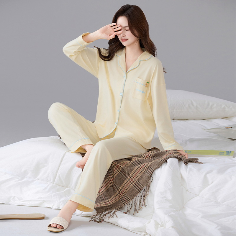 Главная страница > [7A антибактериальный] пижама женский весенний и осенний хлопок с длинными рукавами зимний кардиган повседневный сплошной цвет домашней одежды костюм для волос