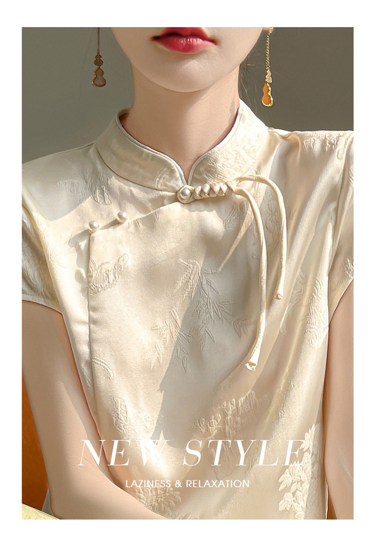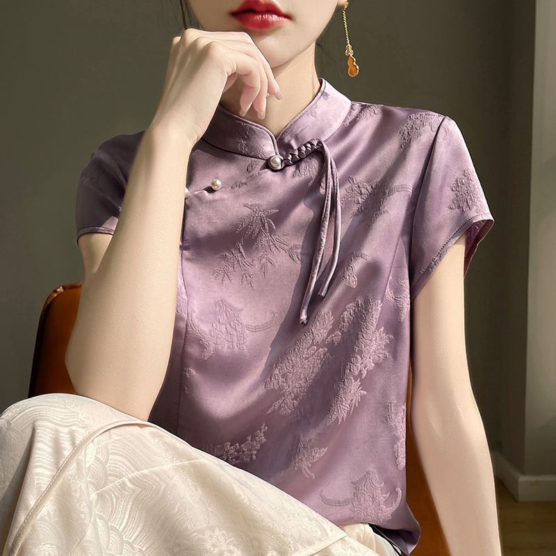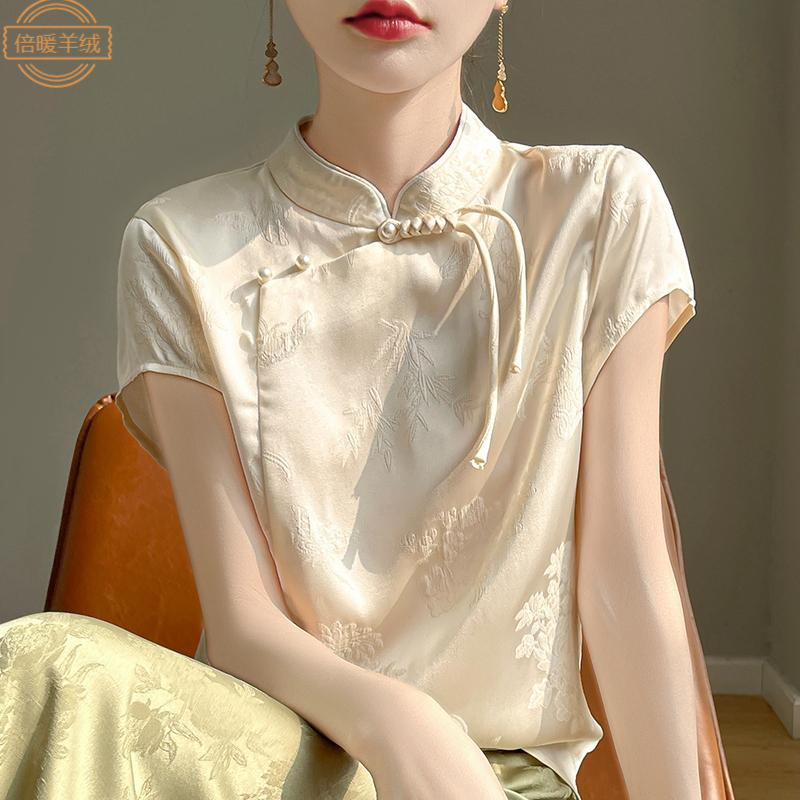Главная страница > Китайский стиль имитация шелковая жаккардовая рубашка женская весна и лето 2025 года