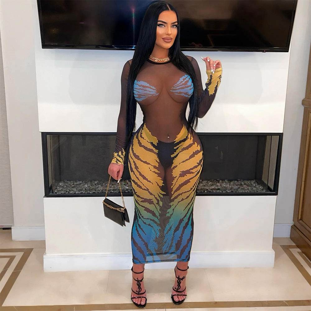 Главная страница > CY901179 Европейский и американский внешняя торговля новая мода с круглым вырезом с прозрачным принтом сетчатое платье для женщин без нижнего белья