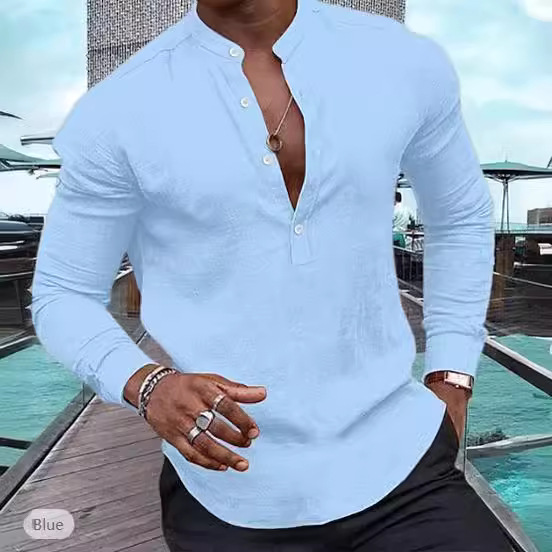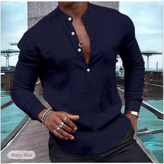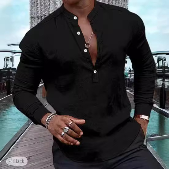 Главная страница > 2024 Европейская и американская мужская одежда оптом, мужская повседневная рубашка-пуловер, однотонный полукардиган с длинным рукавом, топ с воротником Генри