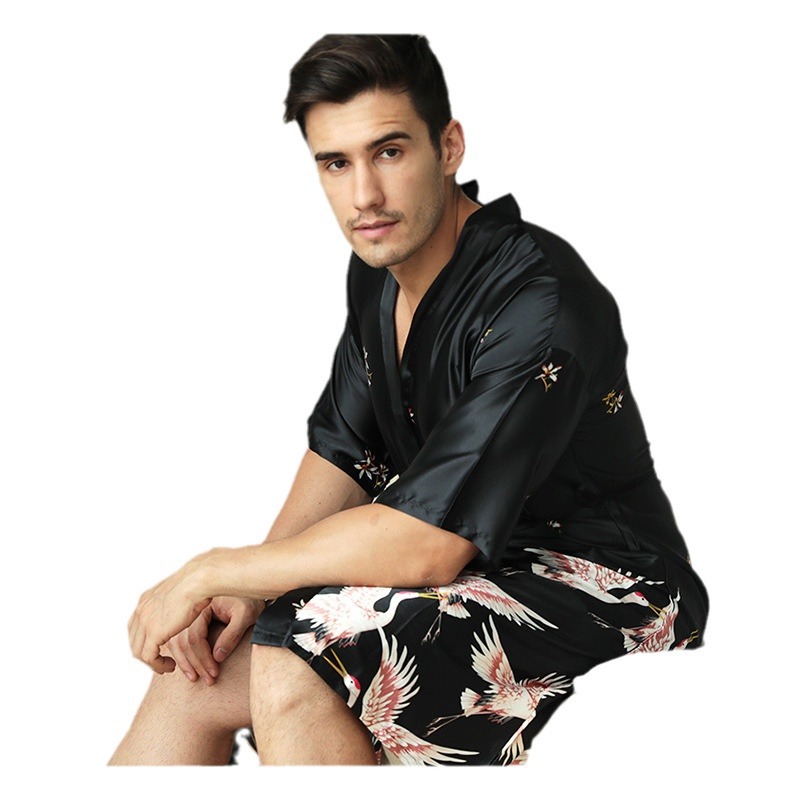 Главная страница > Мужская ночная рубашка, летняя Ночная рубашка средней длины из искусственного шелка с принтом, мужское утреннее платье для жениха невесты, сексуальная пижама