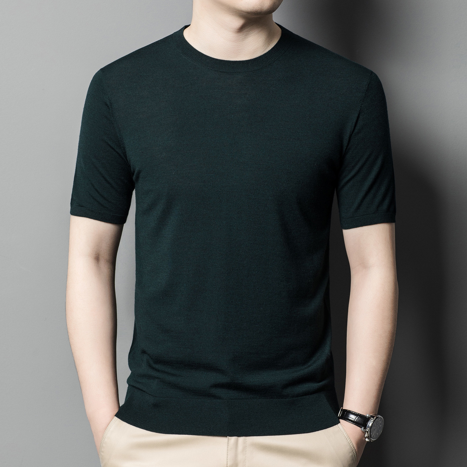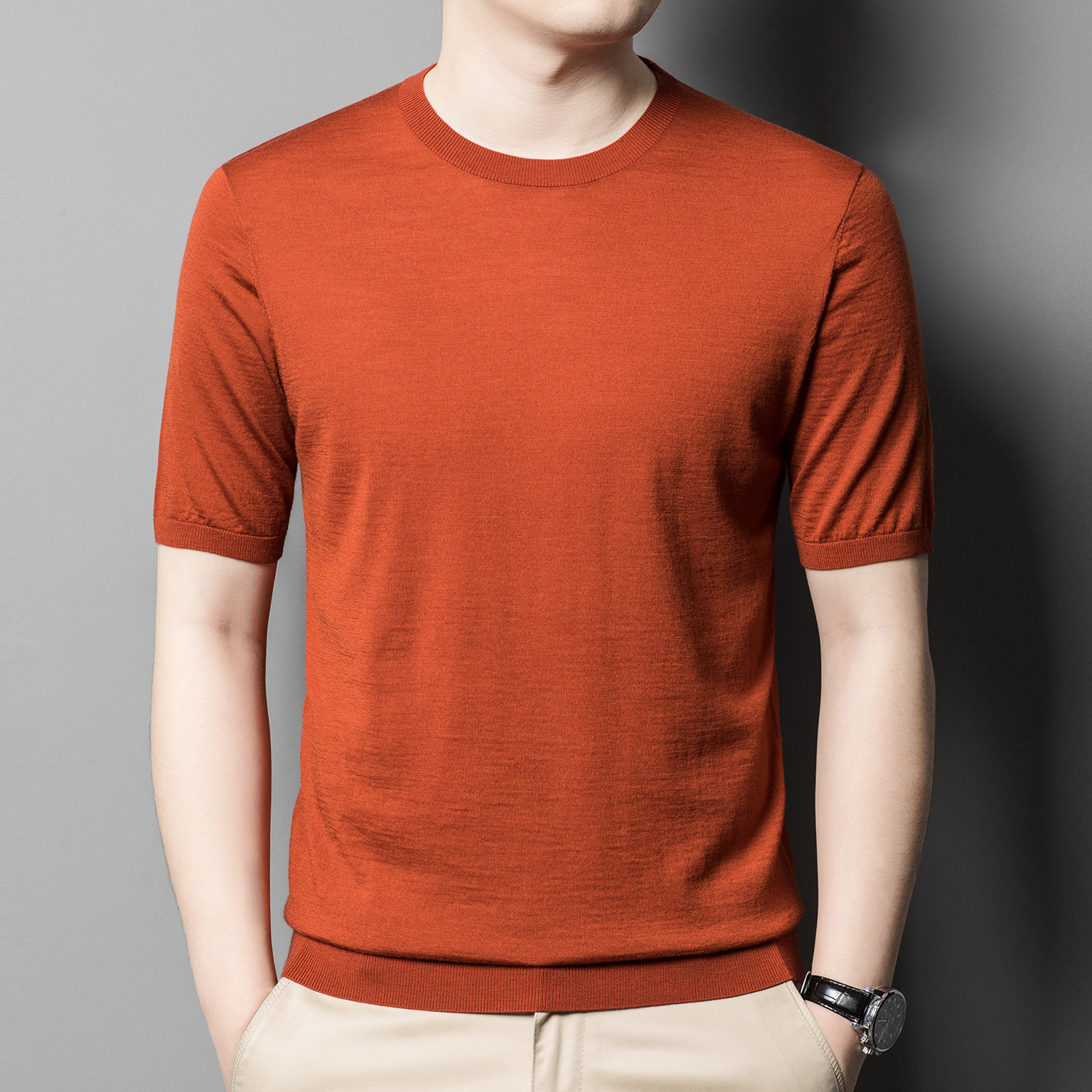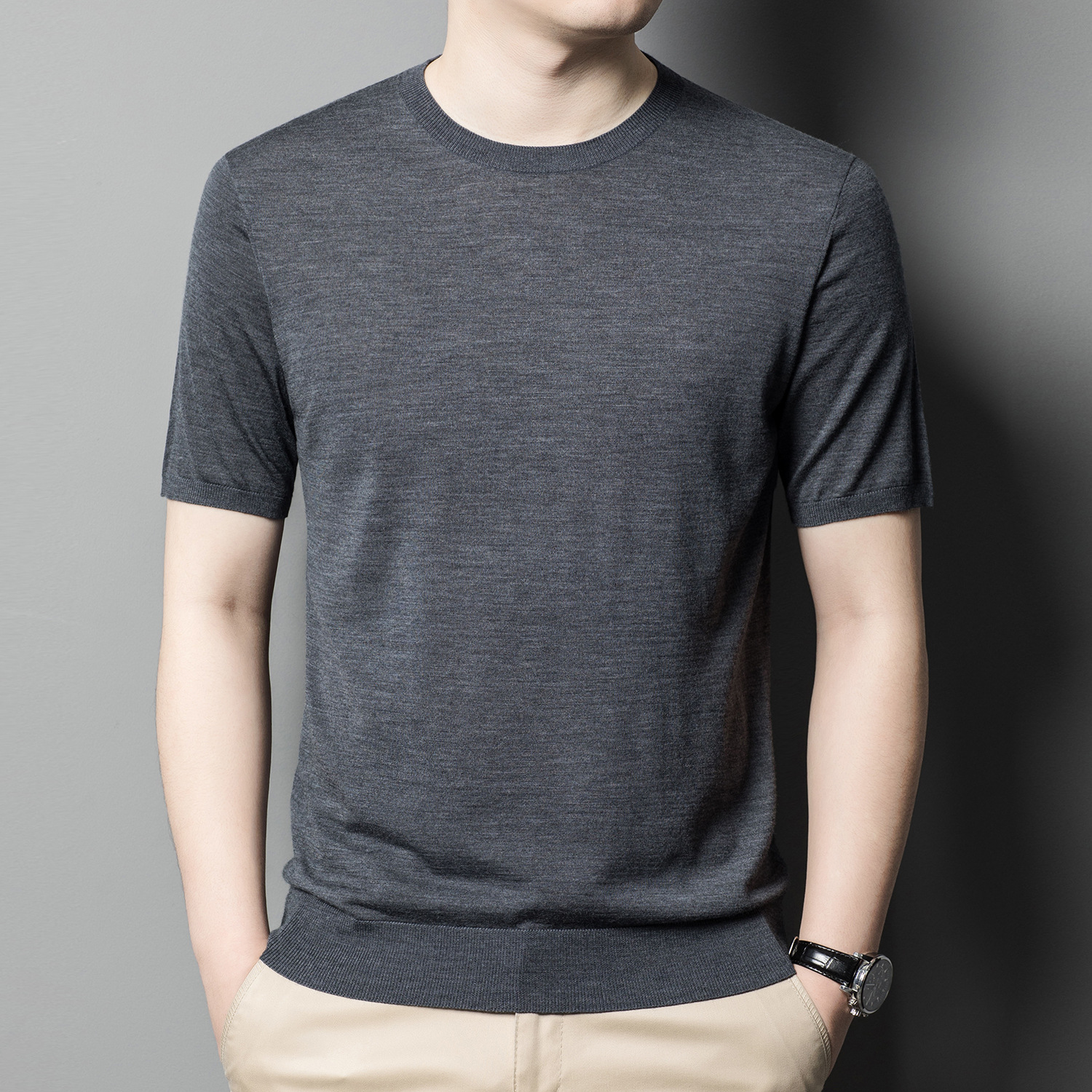 Главная страница > 60 камвольных свитеров с короткими рукавами мужской свитер с круглым вырезом сплошной цвет Летние ультра тонкие 100 чистые шерстяные мужские футболки с половинными рукавами