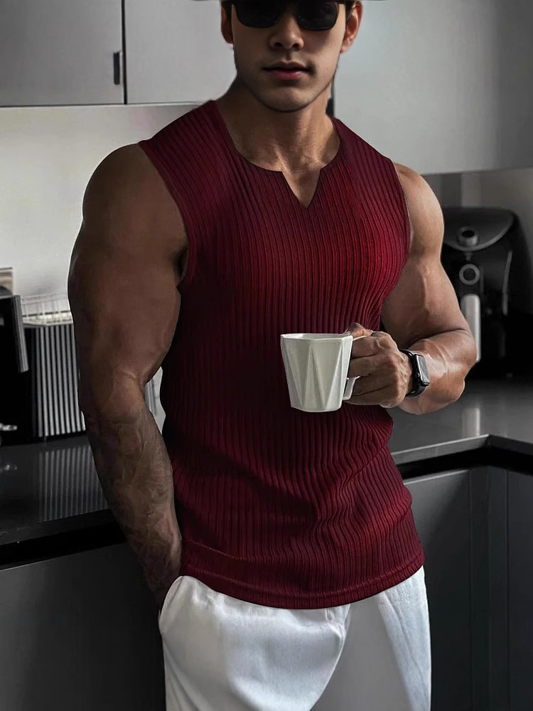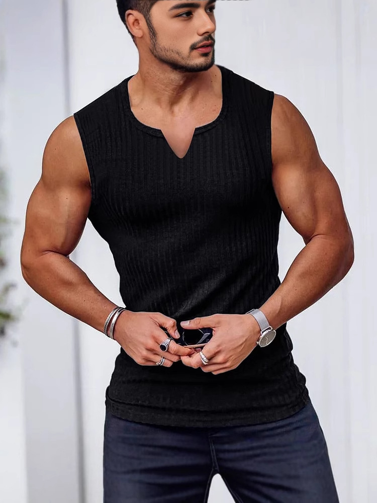 Главная страница > Трансграничная внешняя торговля Летний вязаный вертикальный полосатый фитнес спортивный досуг стройный жилет мужской рабочий с V-образным вырезом с широким плечом жилет