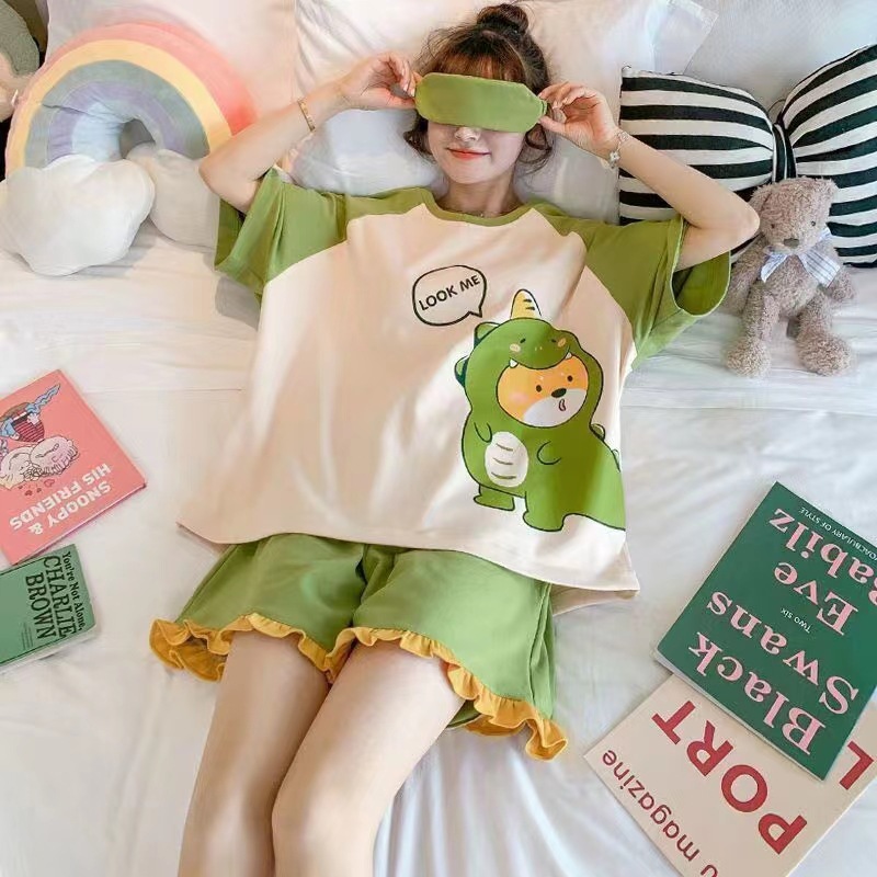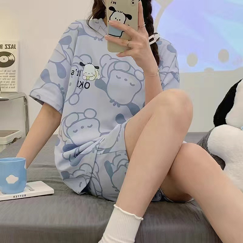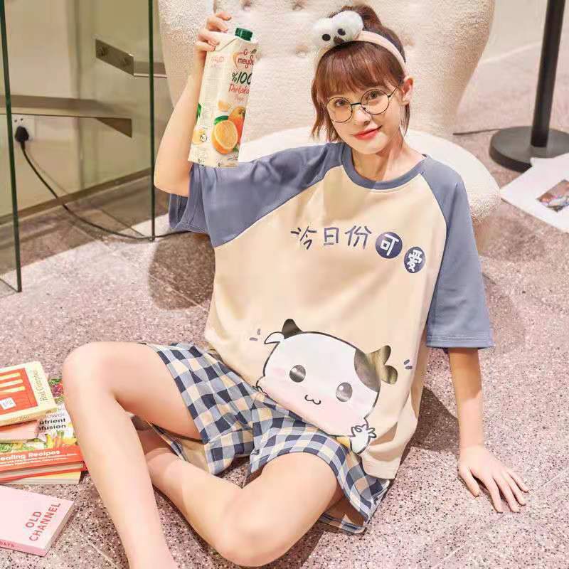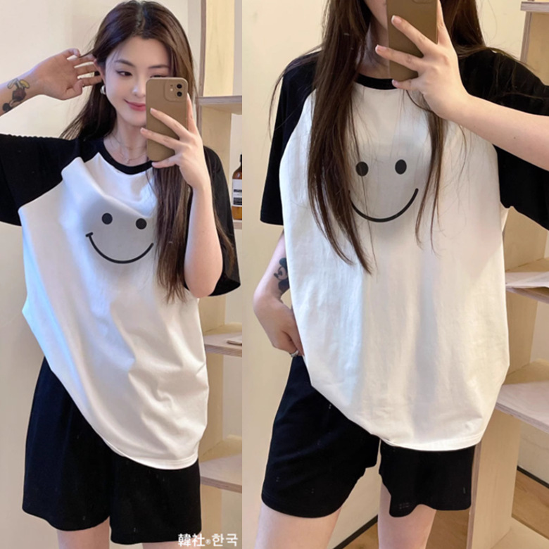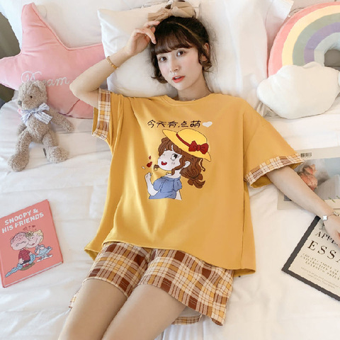 Главная страница > Женская пижама, летняя свободная Милая Пижама с короткими рукавами и героями мультфильмов, Женская Повседневная простая Домашняя одежда контрастных цветов в Корейском стиле