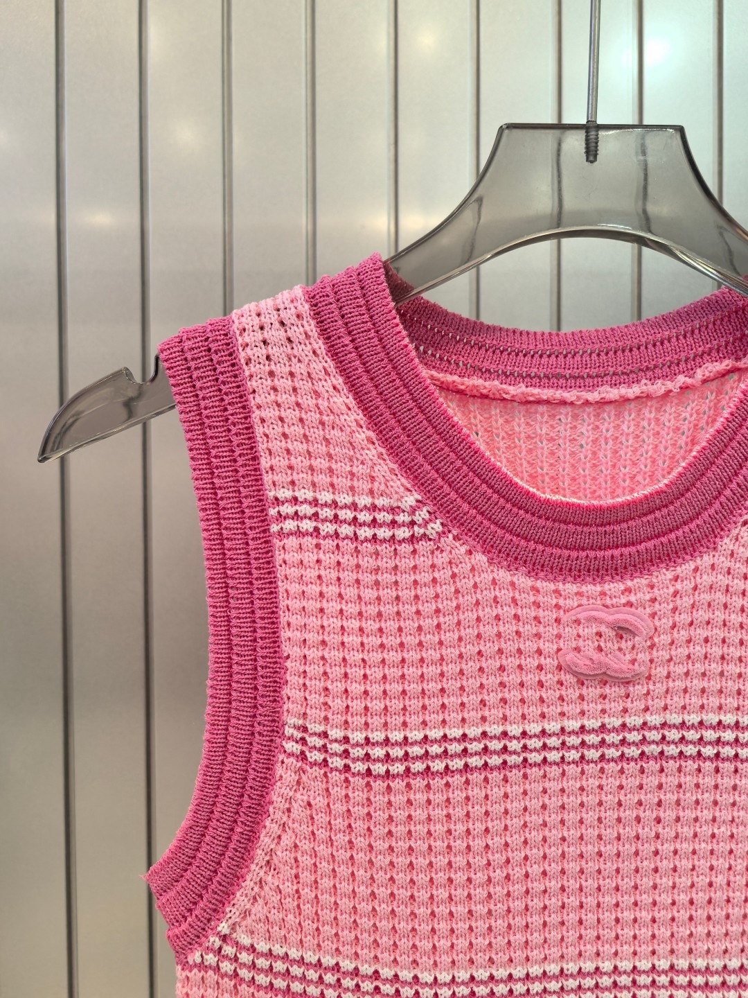 Главная страница > Полосатый контрастный цветной полый вязаный жилет, женский свободный летний 2025, ленивый стиль, безрукавный вязаный многослойный топ, модный