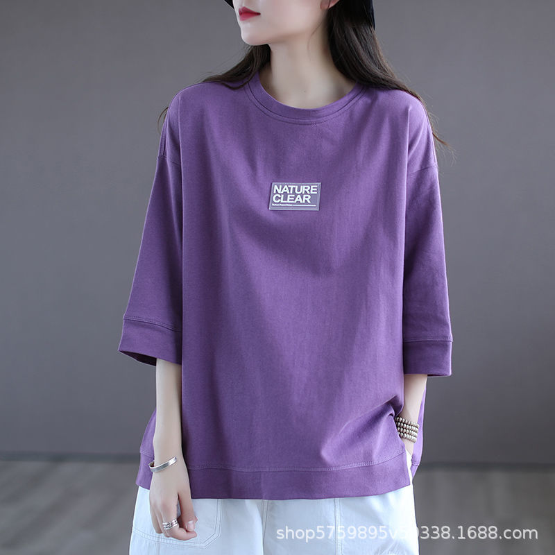 Главная страница > Модная фиолетовая футболка с рукавами три четверти, женская рубашка с короткими рукавами, Повседневная Свободная Женская весенне-летний топ больших размеров