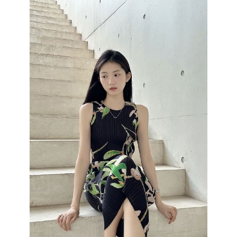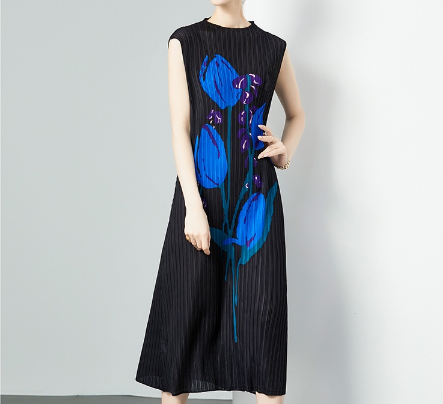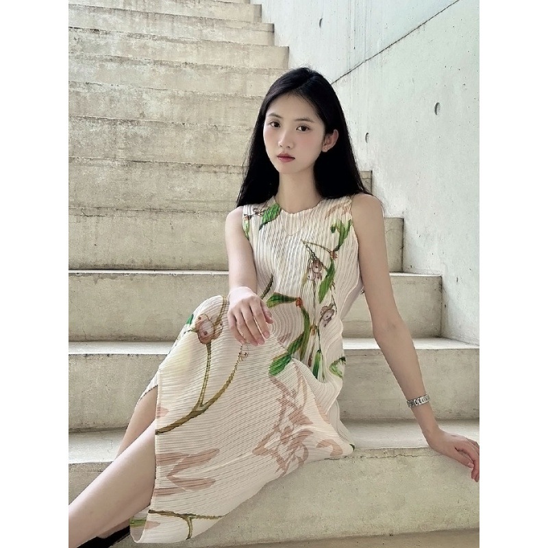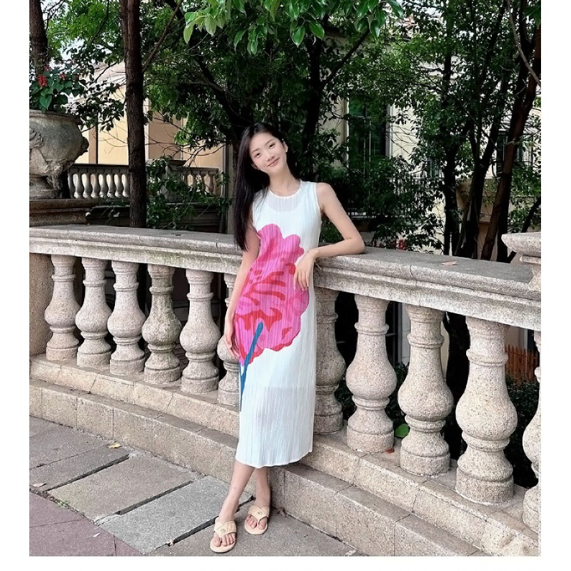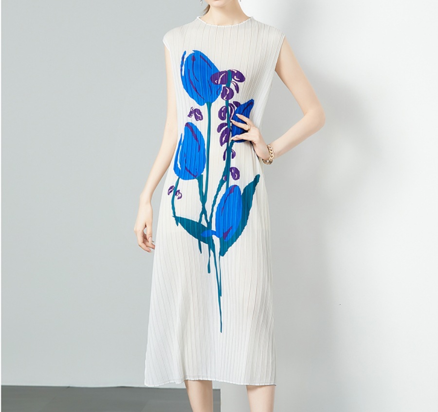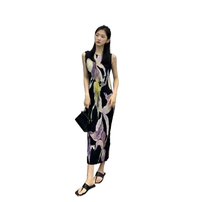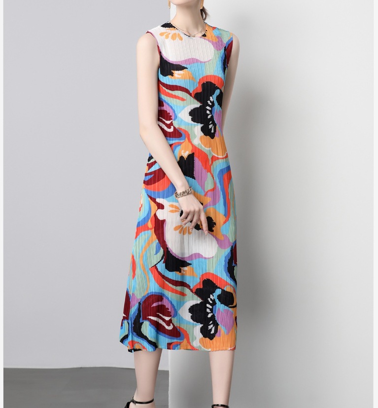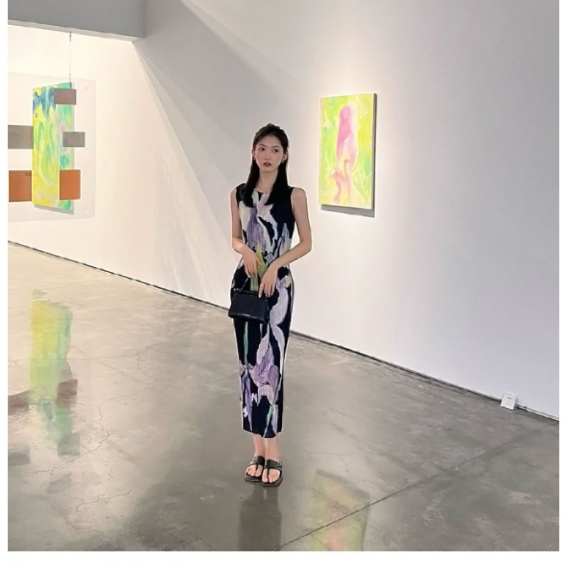Главная страница > Пятно платье с тремя домами с принтом элегантного темперамента высокого уровня расслабленного тонкого темперамента с круглым вырезом без рукавов