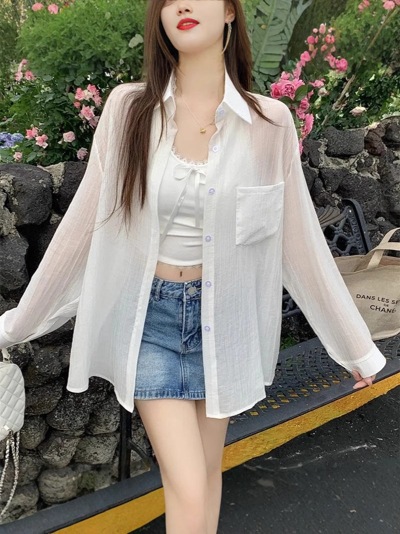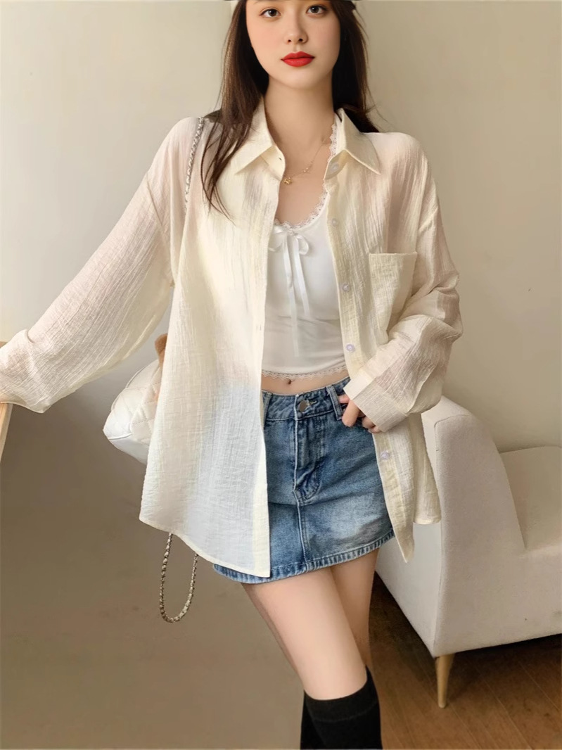 Главная страница > Женская рубашка с защитой от солнца из тенселя, лето 2025, легкая верхняя одежда, ленивый стиль, слегка прозрачный свободный кардиган, куртка, топ