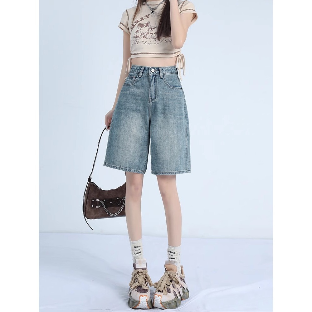 Главная страница > Легкие пятицветные шорты женский летний ковбой 2025 большой размер женский толстый мм с высокой талией и тонкими свободными средыми брюками A3711
