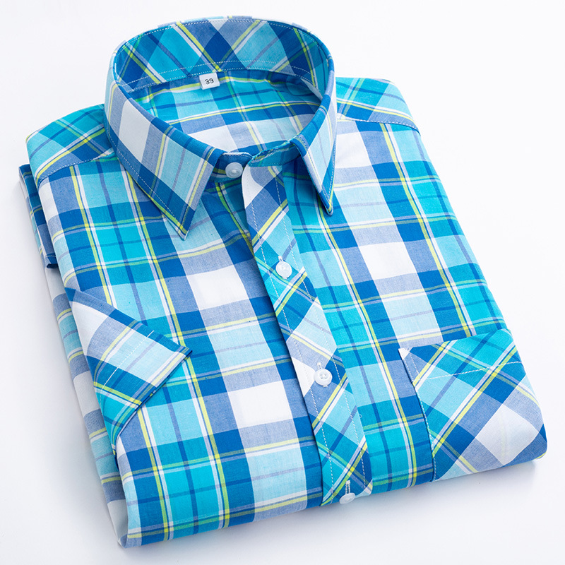 Главная страница > Летняя новая мужская рубашка с короткими рукавами из хлопка в клетку повседневная дикая трансграничная