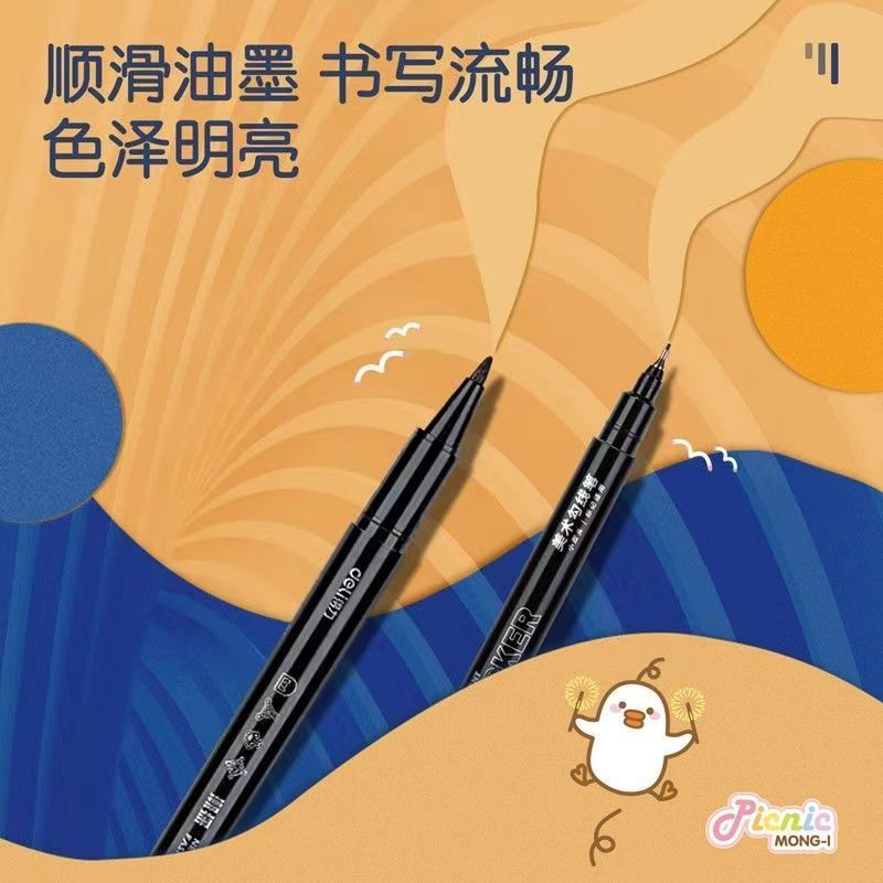 Deli S563 Двойная головка Art Gouline Pen Черная тонкая головка Толстая головка Большая головка Маркер Ручка Оптовые студенты