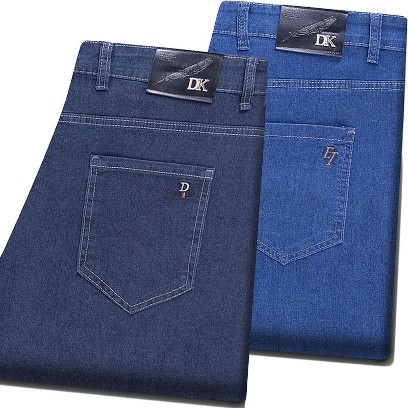 Главная страница > Luo Summer Мужские джинсы Тонкая деловая рабочая одежда среднего возраста с высокой талией Прямые свободные эластичные износостойкие брюки