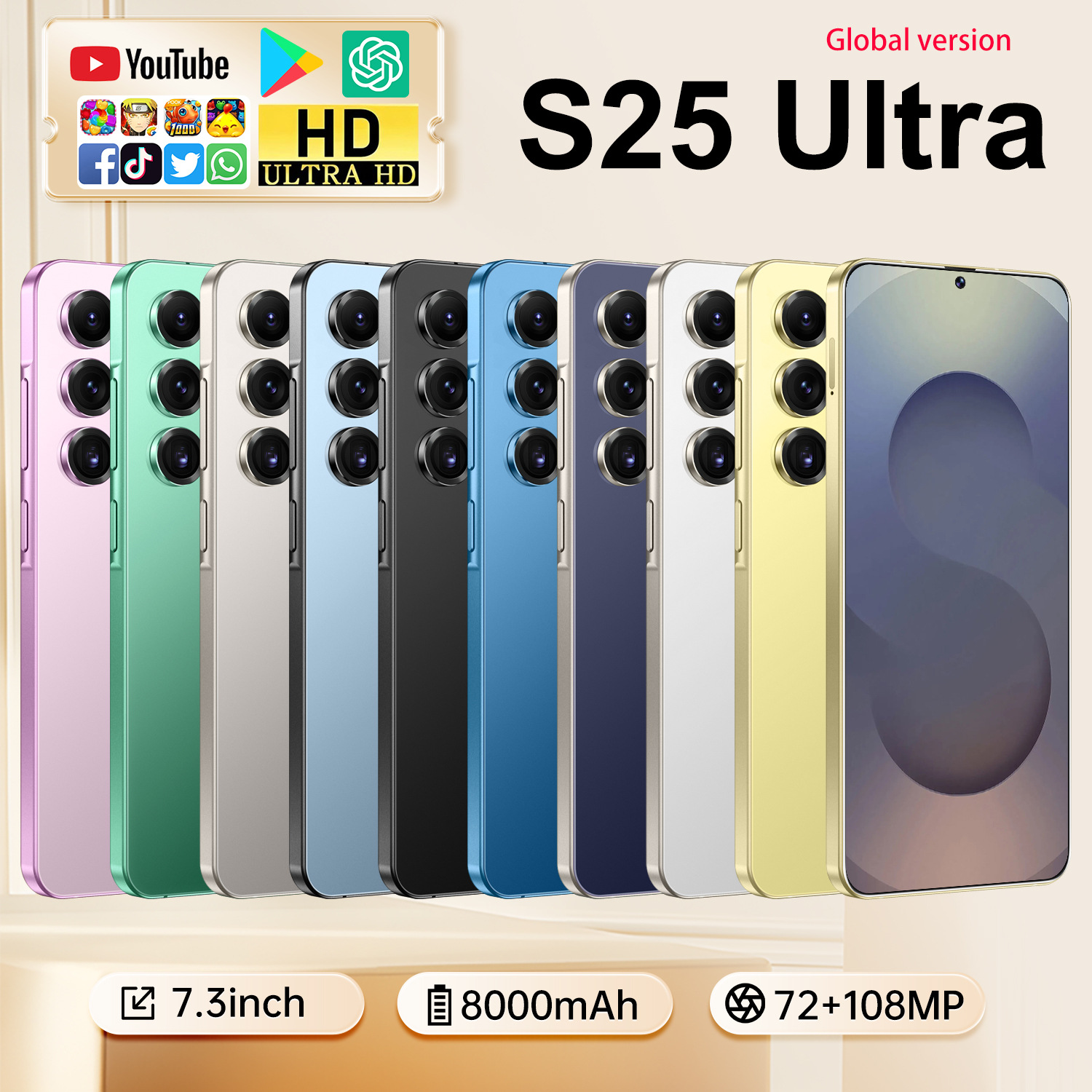 Главная страница > Новый трансграничный мобильный телефон S25 Ultra Android 14 с перфорированным большим экраном 7.3inch года, высококачественный популярный смартфон для внешней торговли