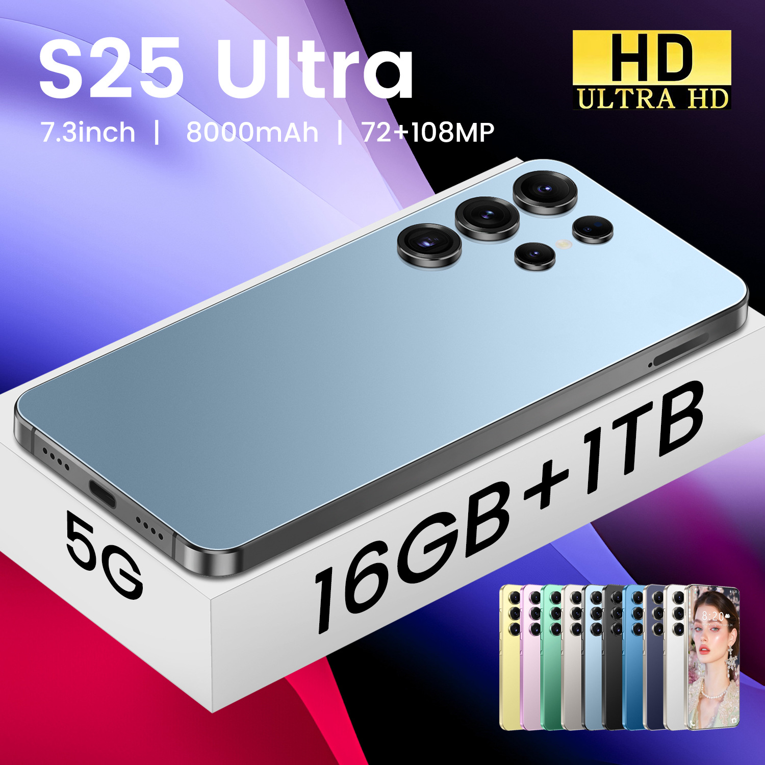 Новый трансграничный мобильный телефон S25 Ultra Android 14 с перфорированным большим экраном 7.3inch года, высококачественный популярный смартфон для внешней торговли