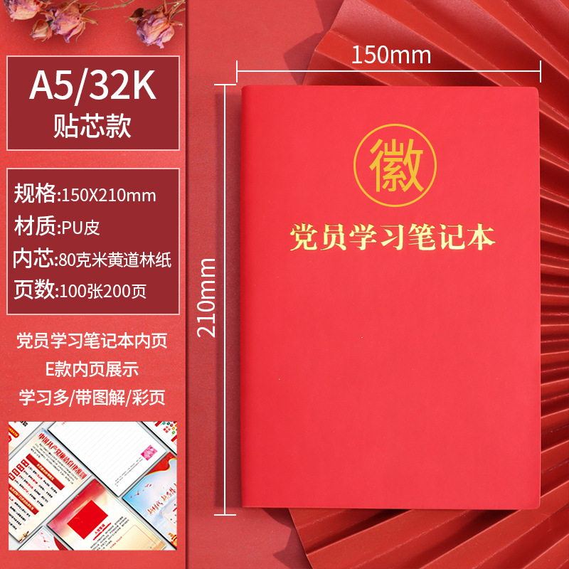 2023 Член Партии A5 Обучающая тетрадь Записная книжка для собрания филиала партии Три встречи и один урок Книга записей с вкладными листами