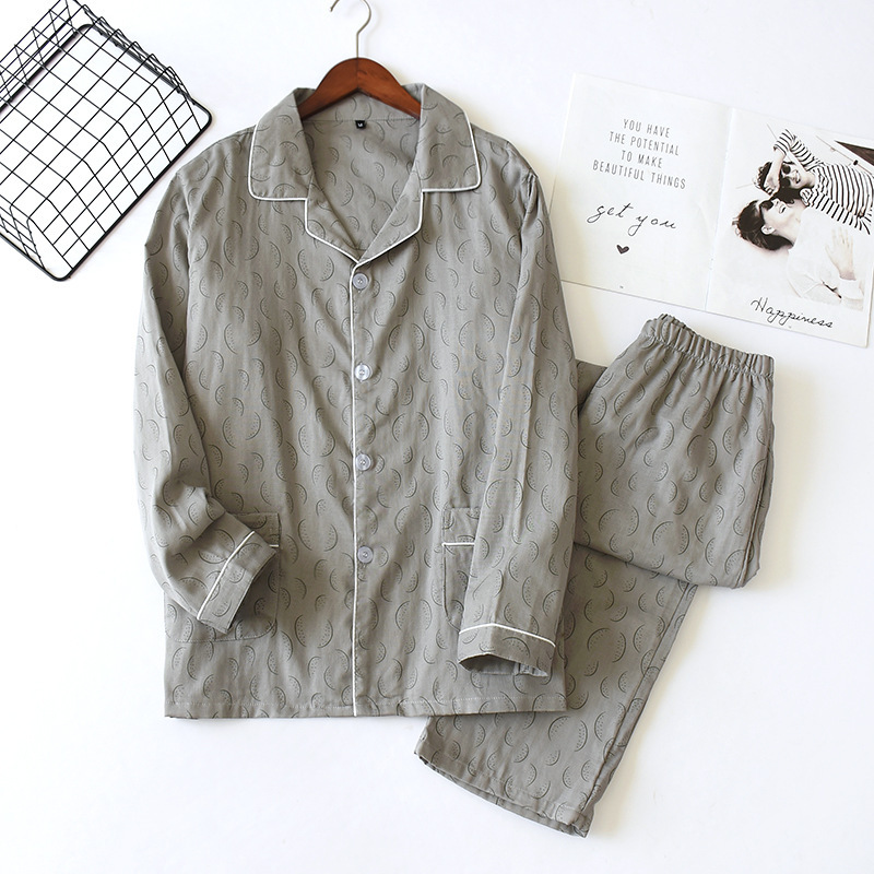 Главная страница > Мужская Пижама на весну и лето, хлопковые марлевые брюки с длинными рукавами, большие размеры, тонкая Домашняя одежда, костюм, повседневный комплект из двух предметов