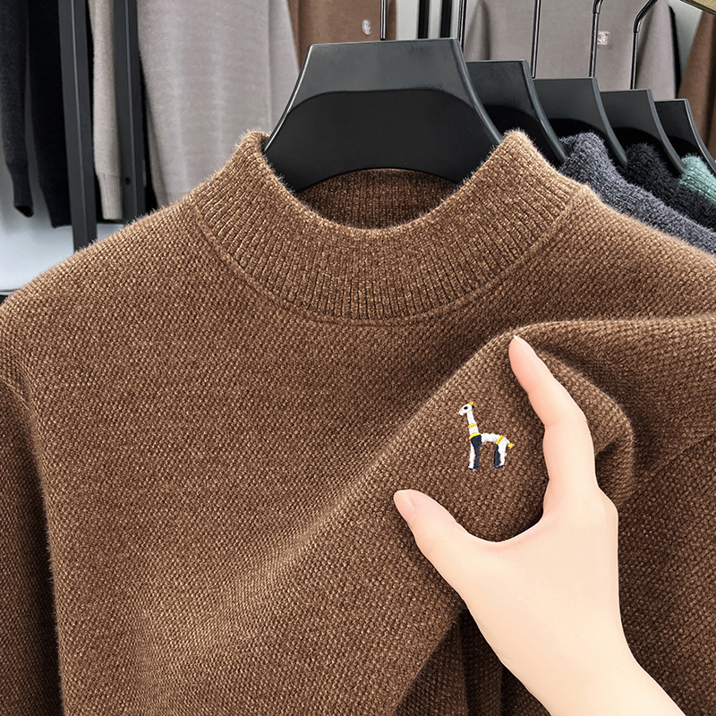Трансграничный зимний бархатный утолщение мужской свитер 2024 новый пол-вышивок с вышивкой модный теплый мужской свитер
