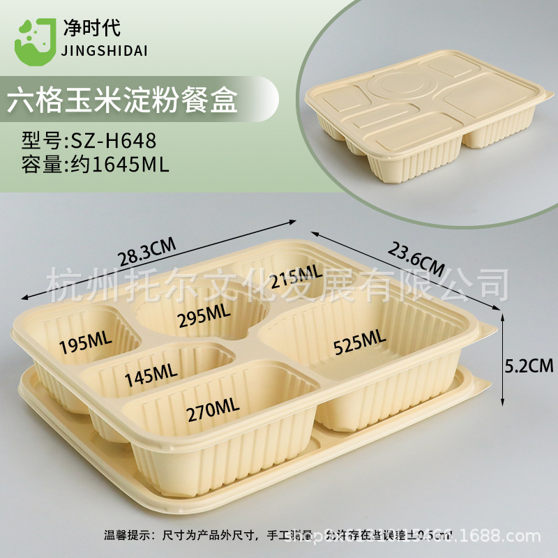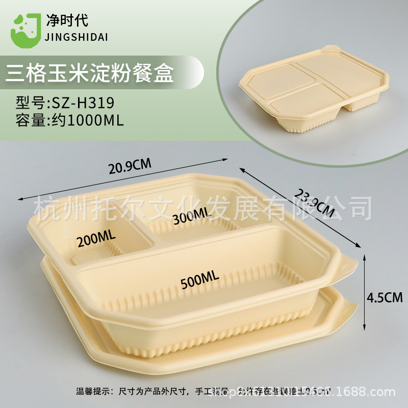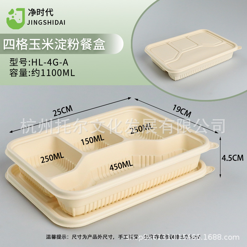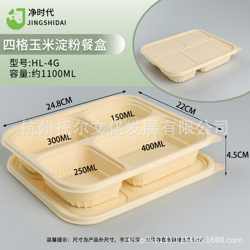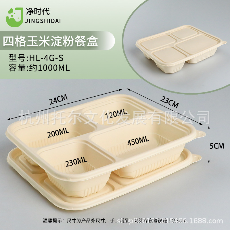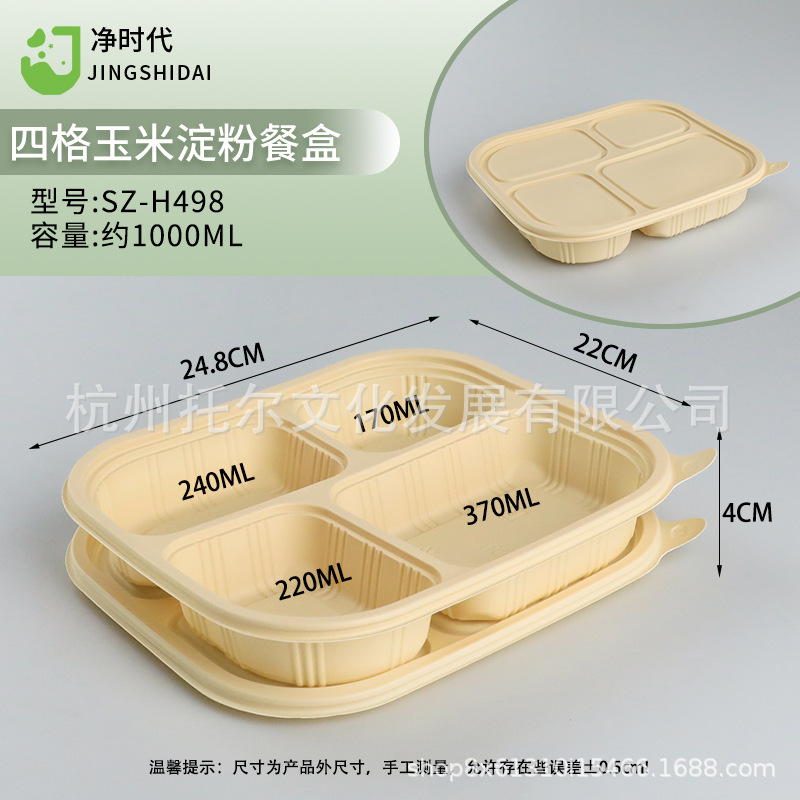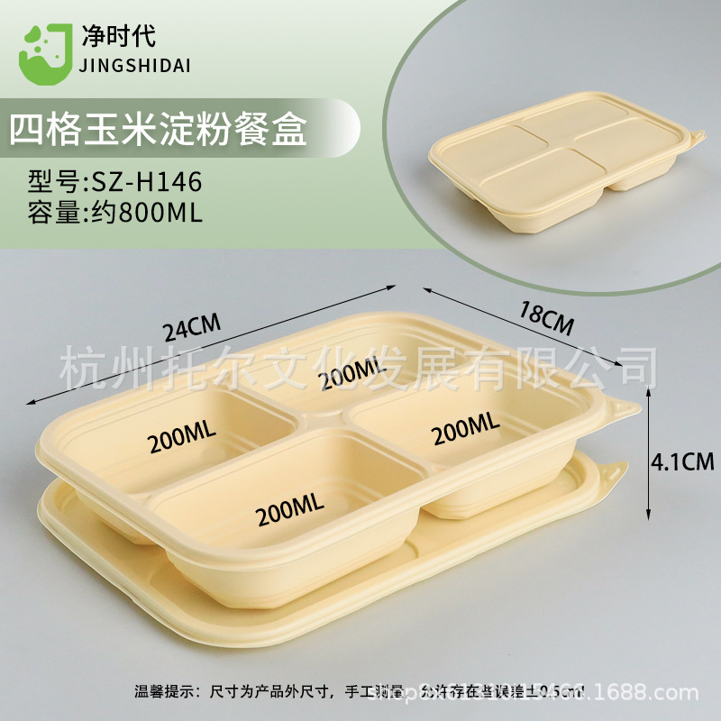 Saizhuo экологически чистый одноразовый ланч-бокс с четырьмя отделениями, выносный ящик из кукурузного крахмала, биоразлагаемый ланч-бокс с отделением
