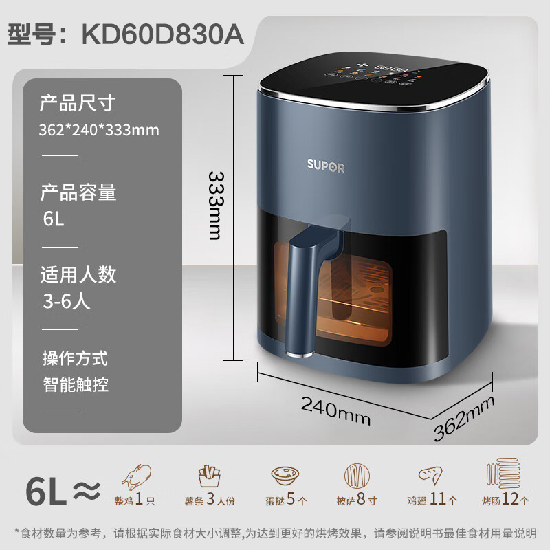 Новая модель аэрофритюрницы Supor 2025 года для домашнего использования, многофункциональная аэрофритюрница большой емкости 5 л, электрическая фритюрница