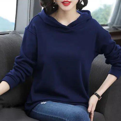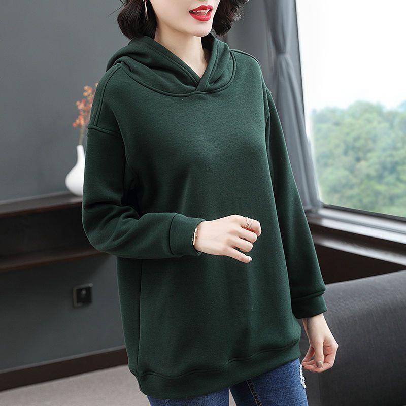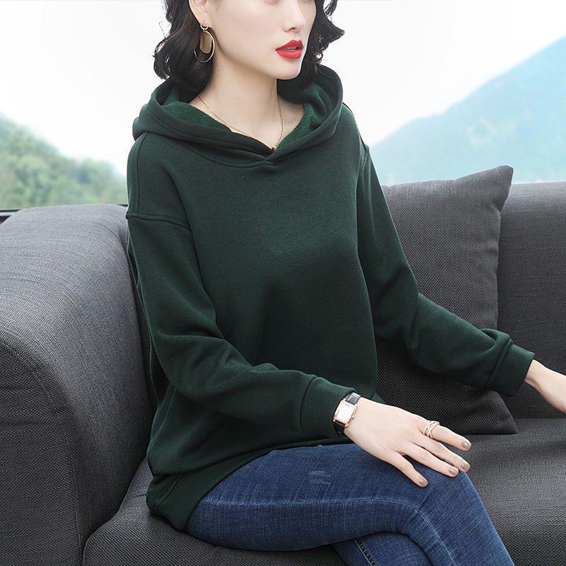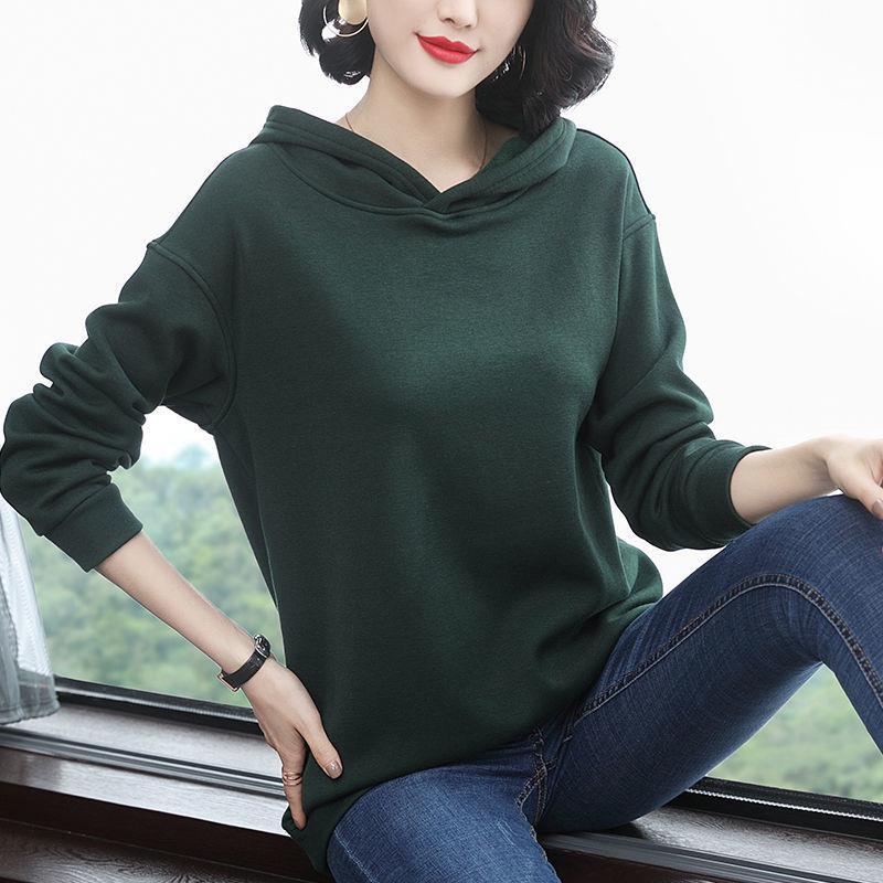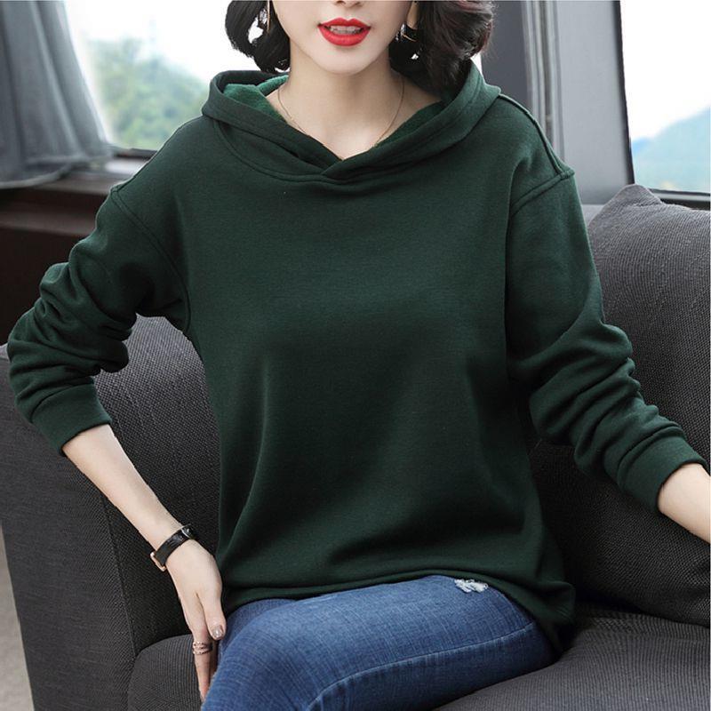 Главная страница > Свитер на флисовой подкладке, новая Женская толстовка с капюшоном, осень/зима 2022, свободная шляпа для матери среднего возраста, Базовая рубашка, Топ с длинным рукавом