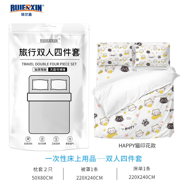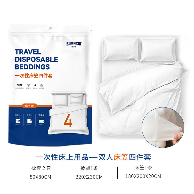 Главная страница > Одноразовые постельные принадлежности для путешествий двойной набор из четырех частей с принтом простыни одеяло наволочки отель портативное постельное белье для деловых поездок