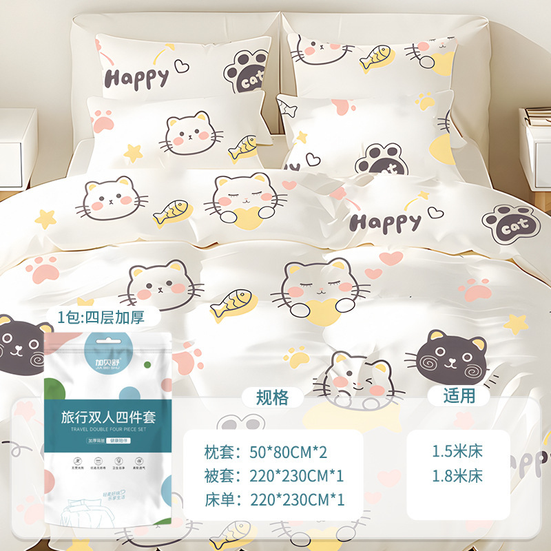 Одноразовые постельные принадлежности для путешествий двойной набор из четырех частей с принтом простыни одеяло наволочки отель портативное постельное белье для деловых поездок