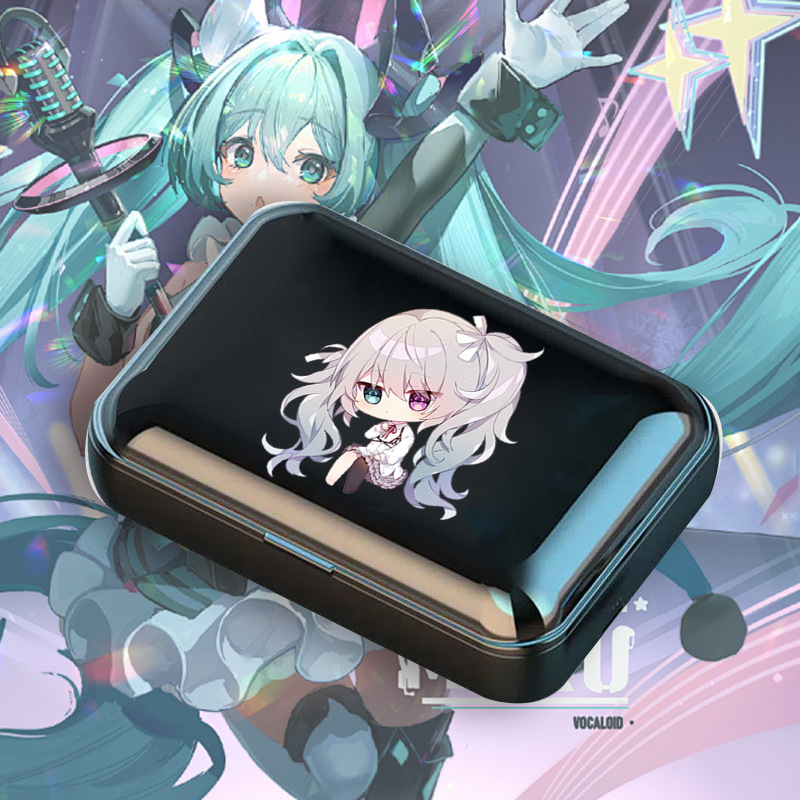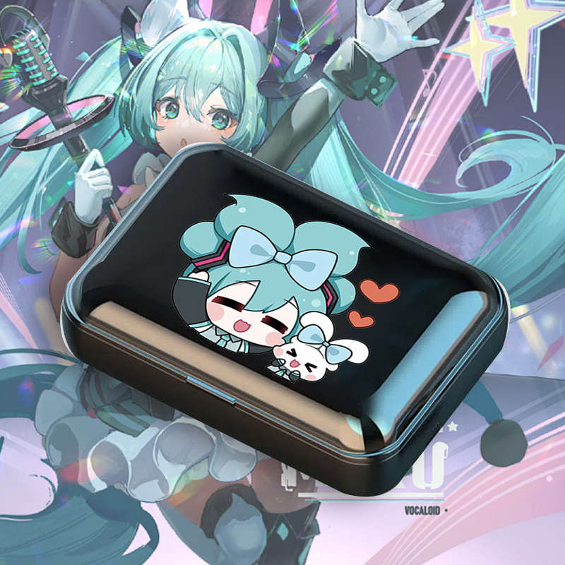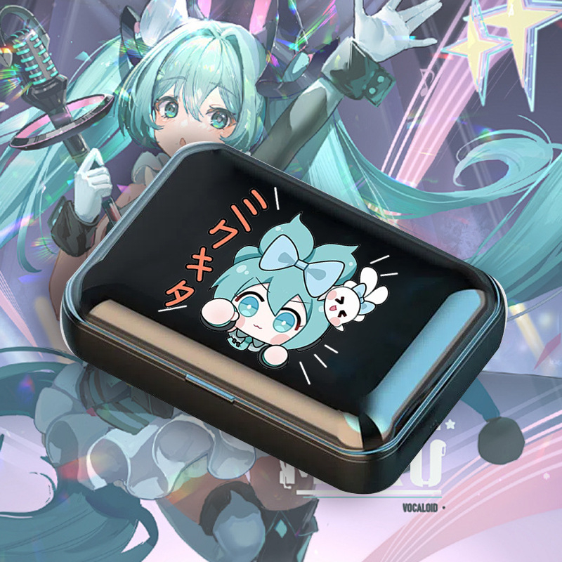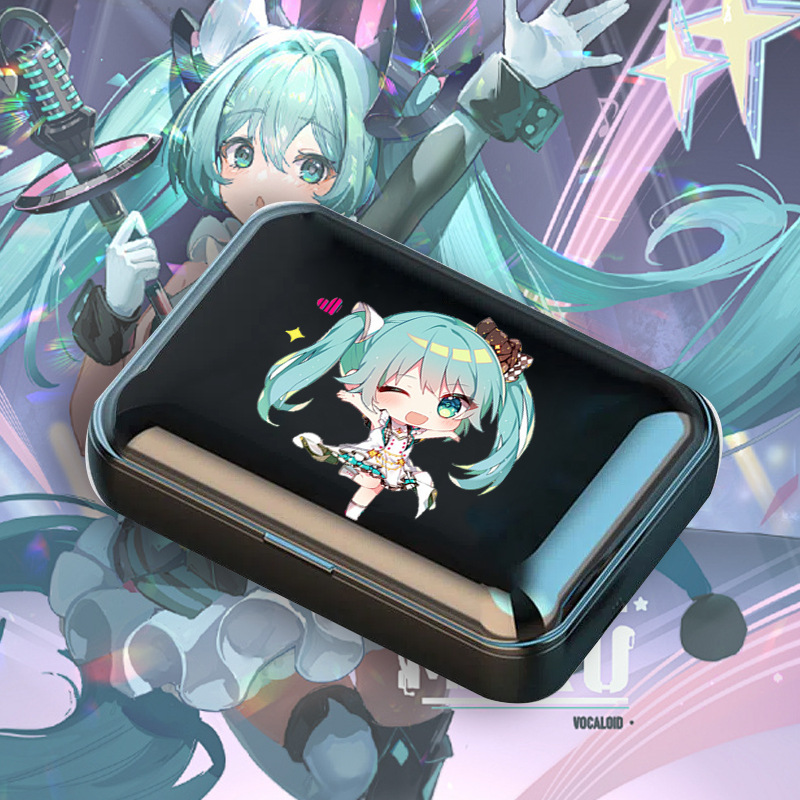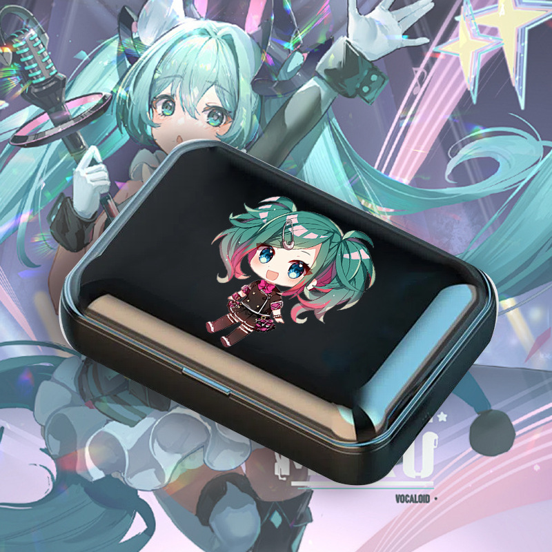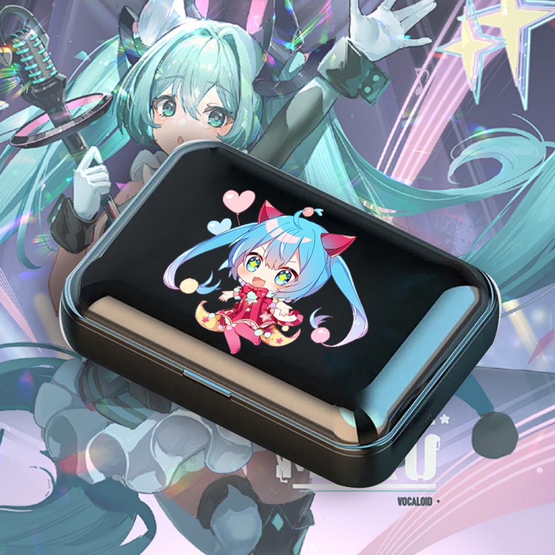 TWS двумерная настоящая беспроводная Bluetooth-гарнитура по индивидуальному заказу с картинками для мобильных телефонов, мини-цифровой дисплей, мультяшный зарядный отсек Hatsune