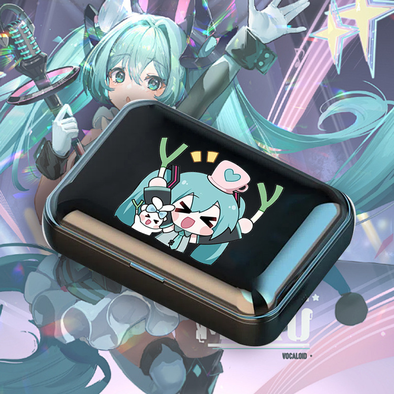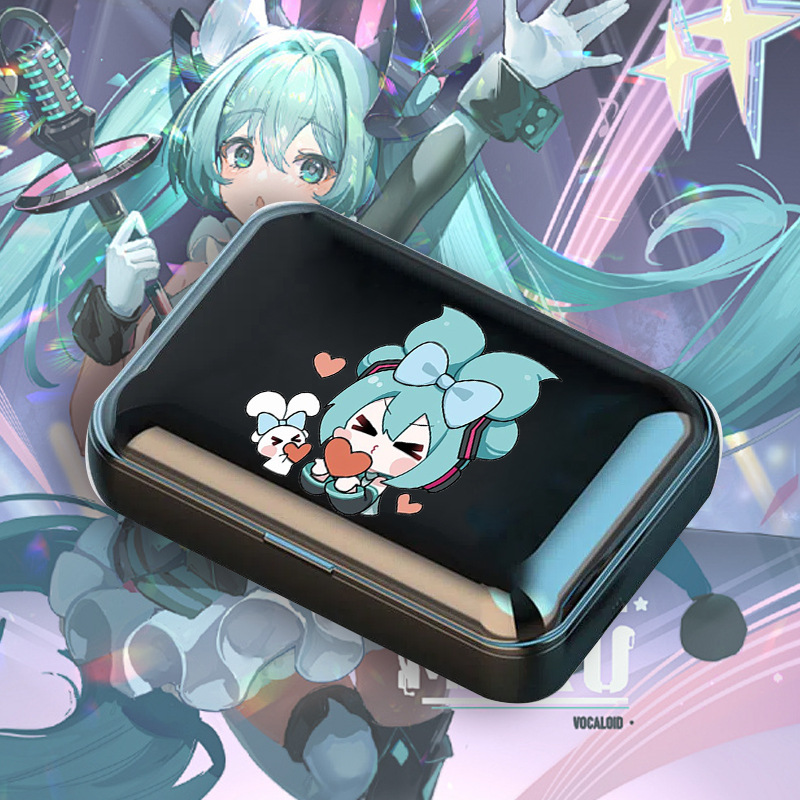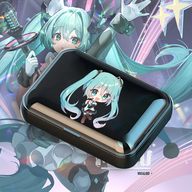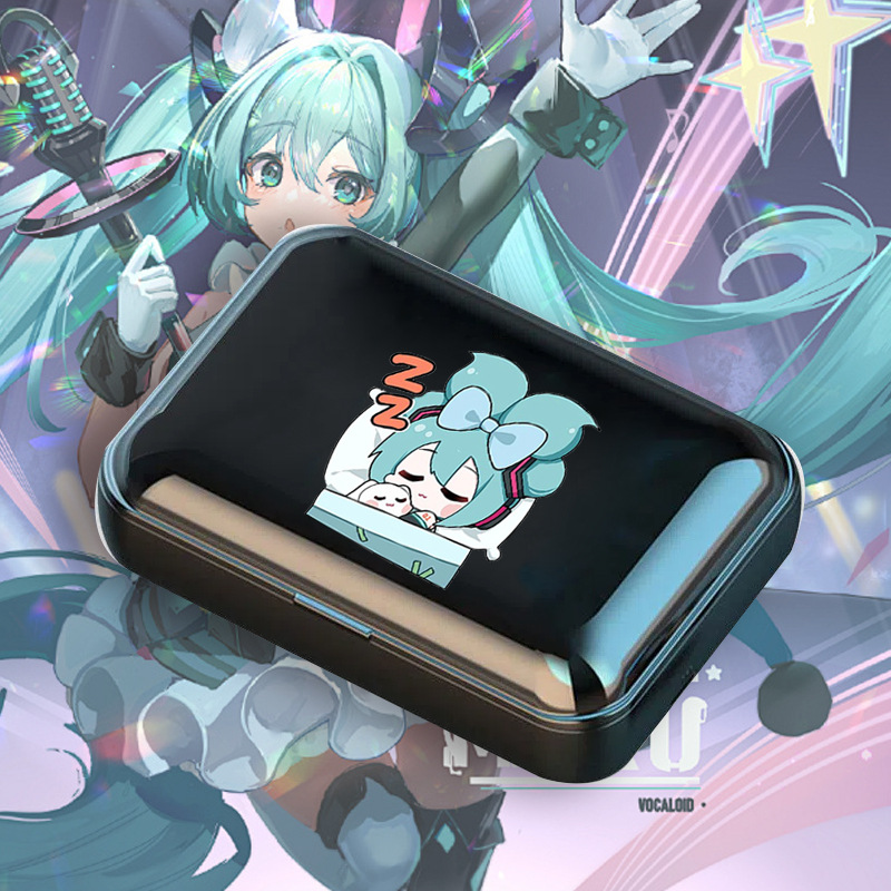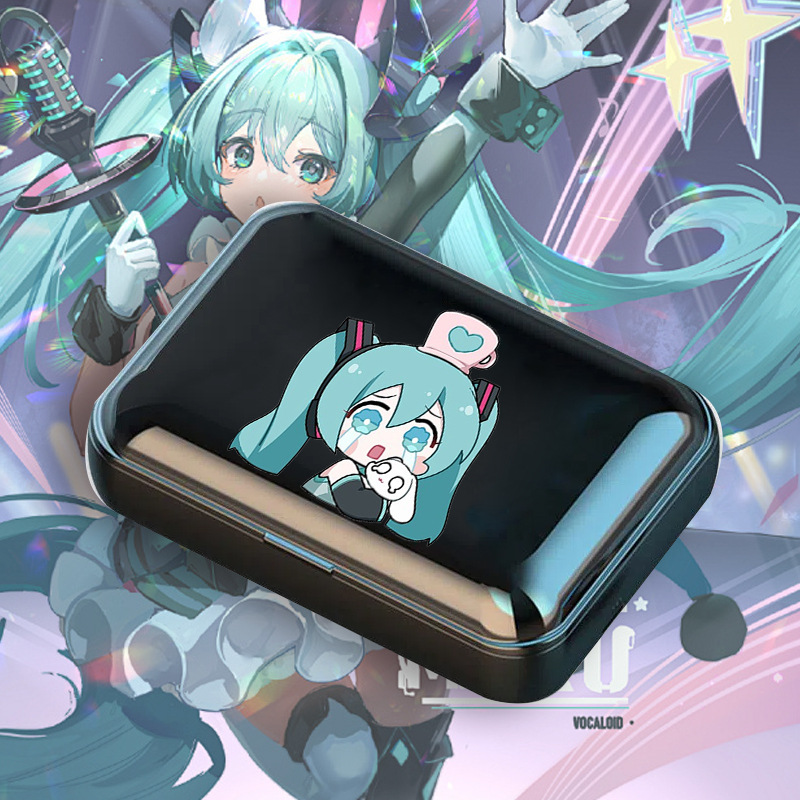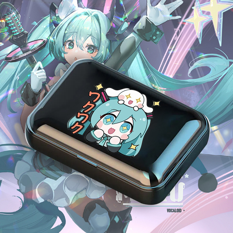 TWS двумерная настоящая беспроводная Bluetooth-гарнитура по индивидуальному заказу с картинками для мобильных телефонов, мини-цифровой дисплей, мультяшный зарядный отсек Hatsune