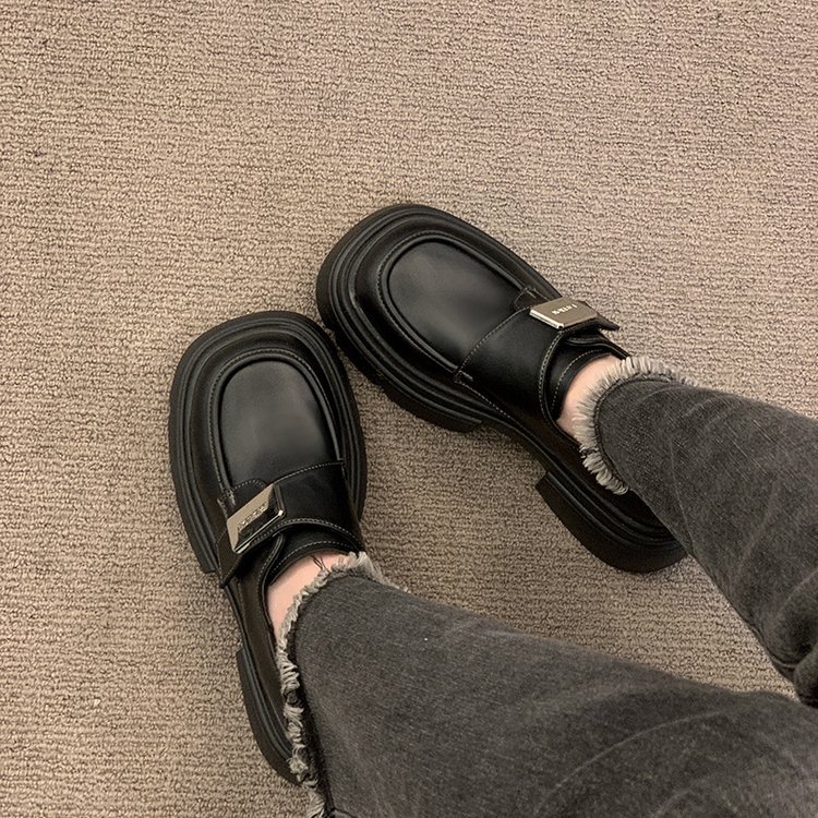 Главная страница > Британский стиль ретро с круглой головкой на большой подошве jk кожаные туфли женские 2024 новые французские рафу туфли весной и осенью