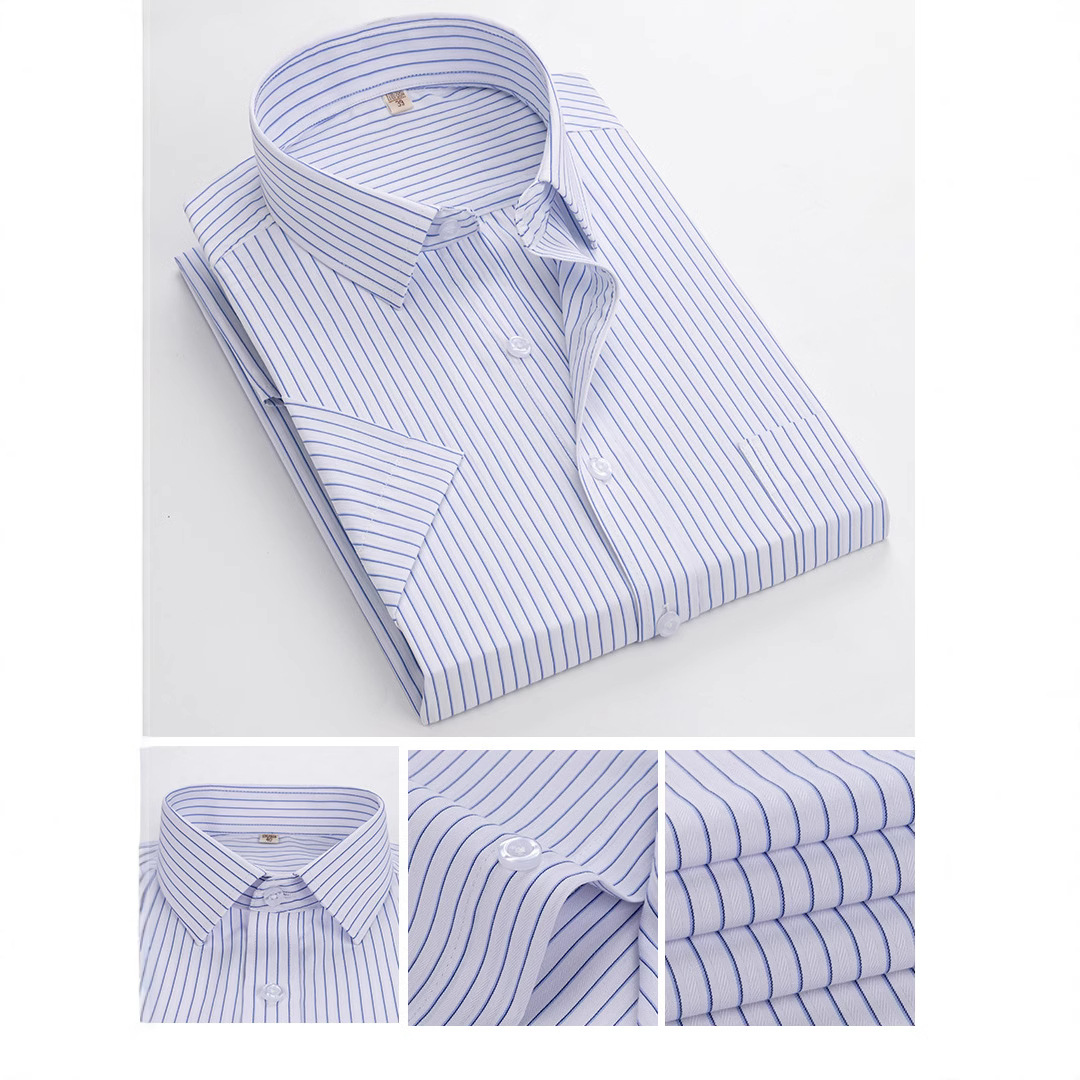 Главная страница > Рубашка с короткими рукавами, мужская весенняя повседневная высококачественная полосатая рубашка, мужская деловая профессиональная рабочая одежда, белый топ, рабочая одежда